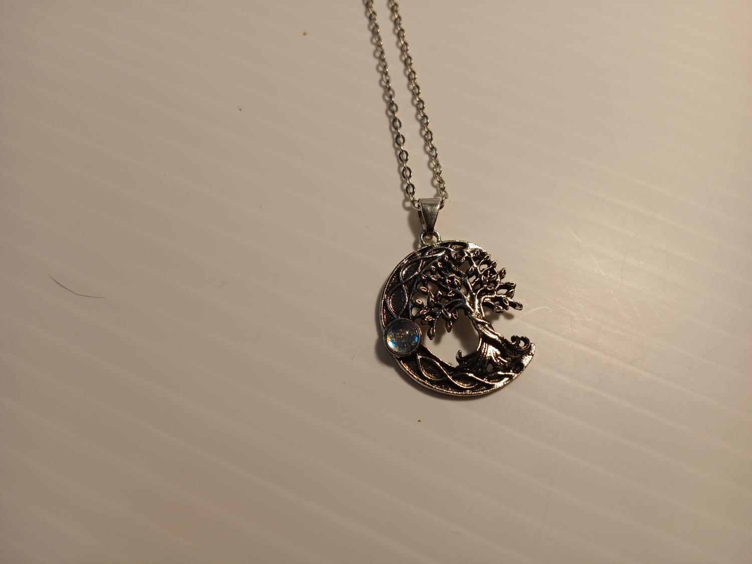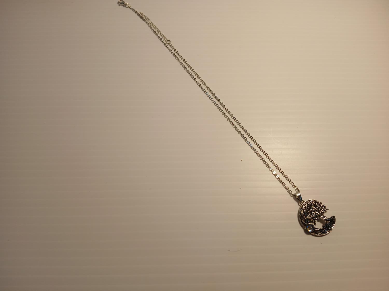 548 Silver Toned Tree of Life And Moon Necklace (Unused)