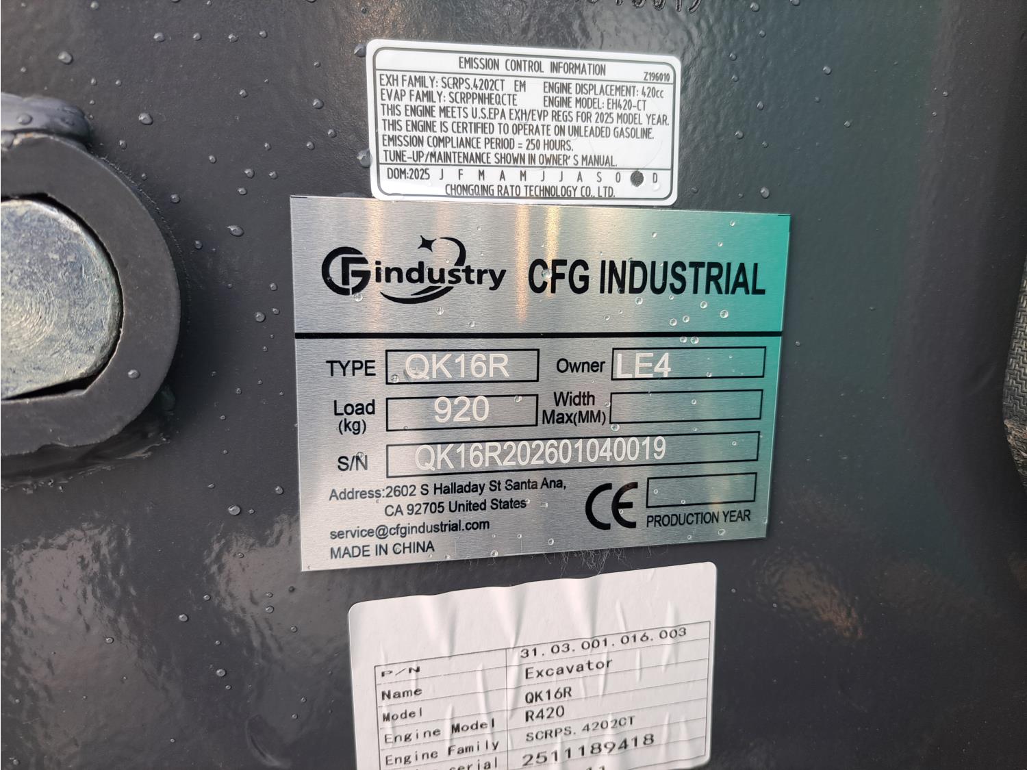 392 2026 CFG QK16R Mini Excavator (Unused)