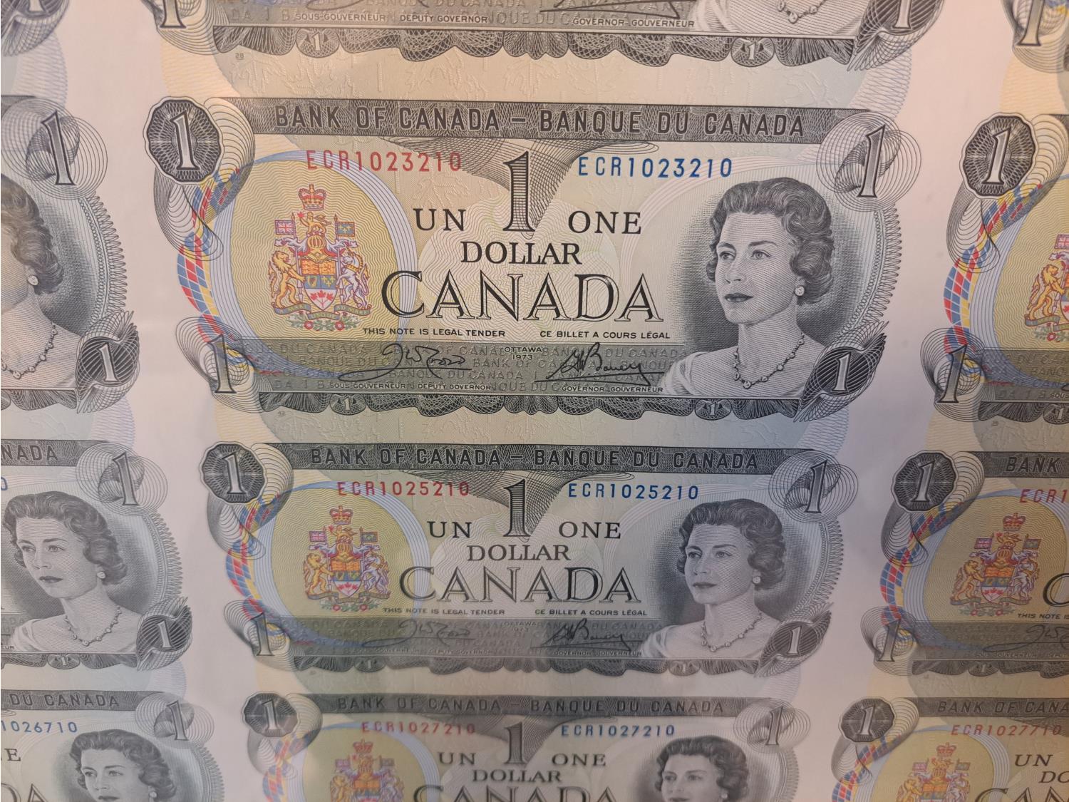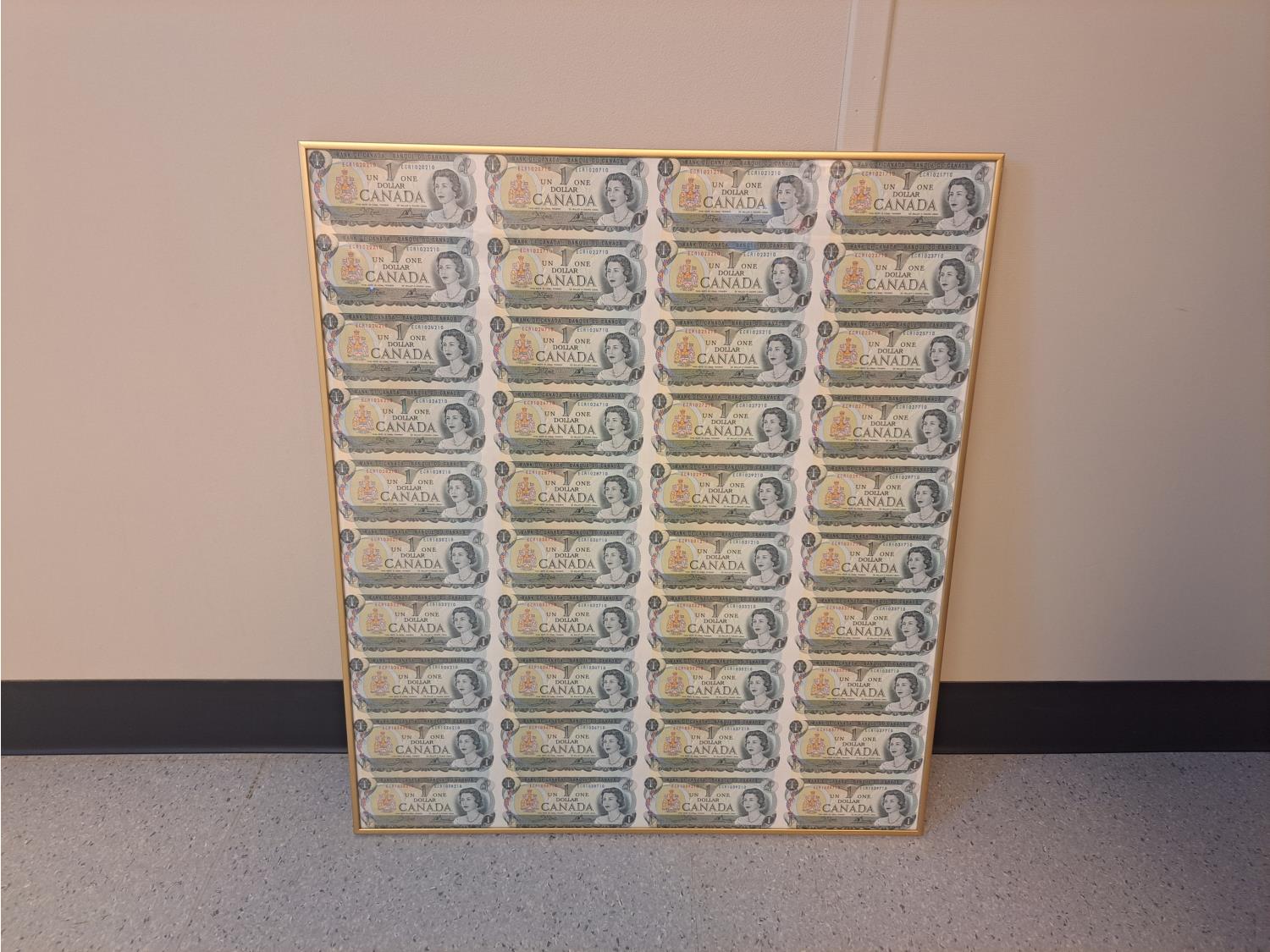 275 (40) Uncut Canadian 1 Dollar Bills with Frame