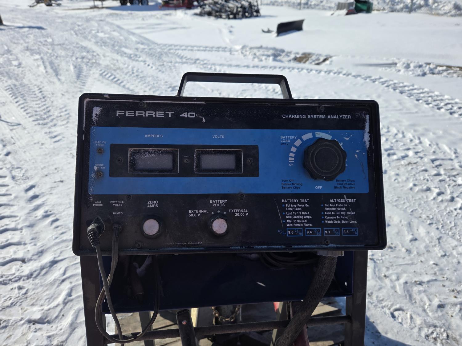 HTJ-1000 hydraulic transmission jack, Ferret 40 battery charging system analyzer, engine hoist