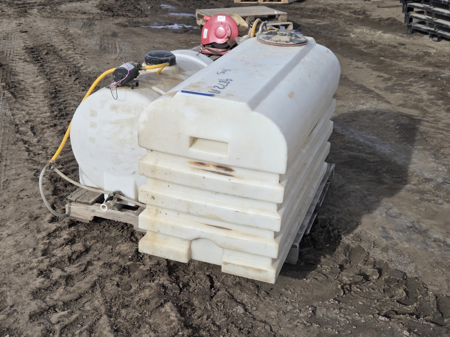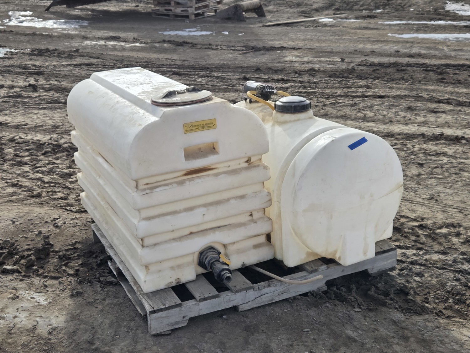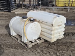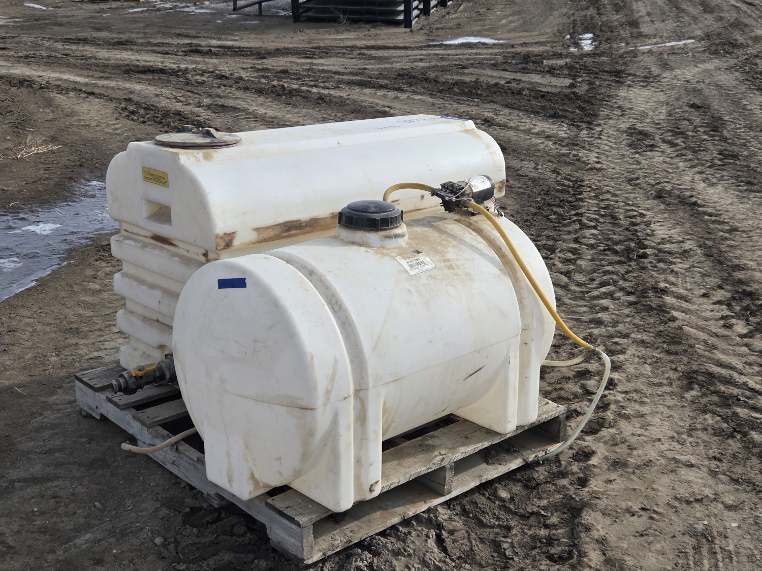 (1) 500L polytank, (1) 55 gallon polytank w/ 12V pump