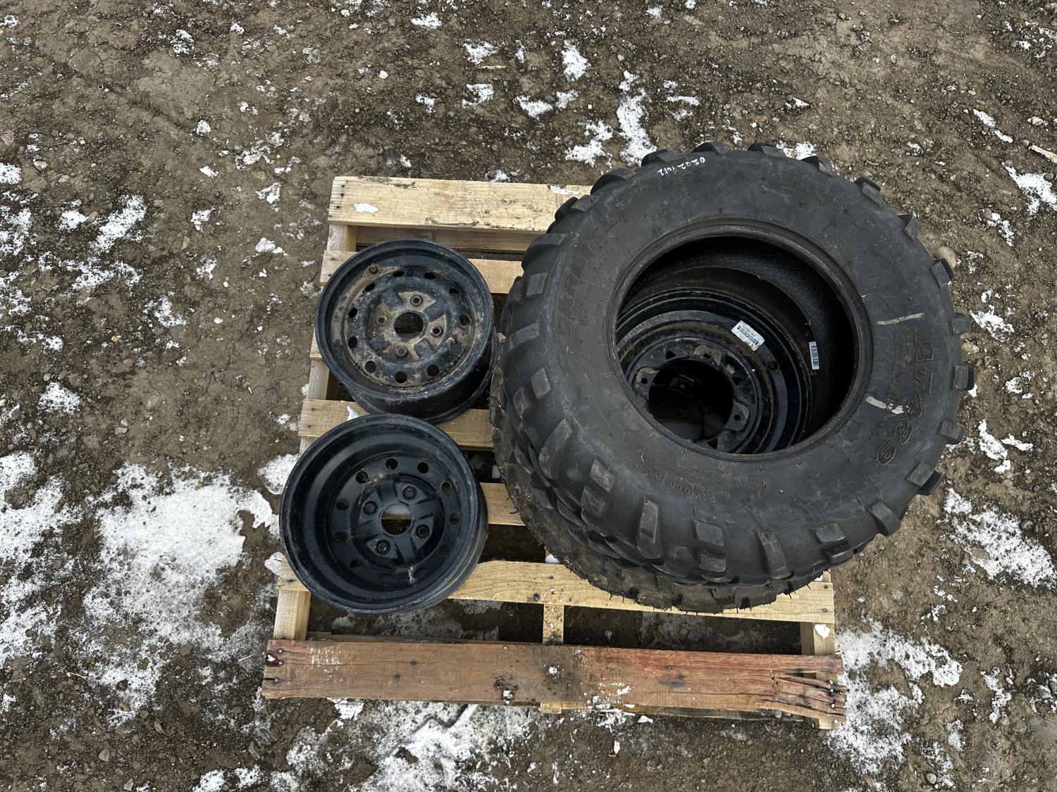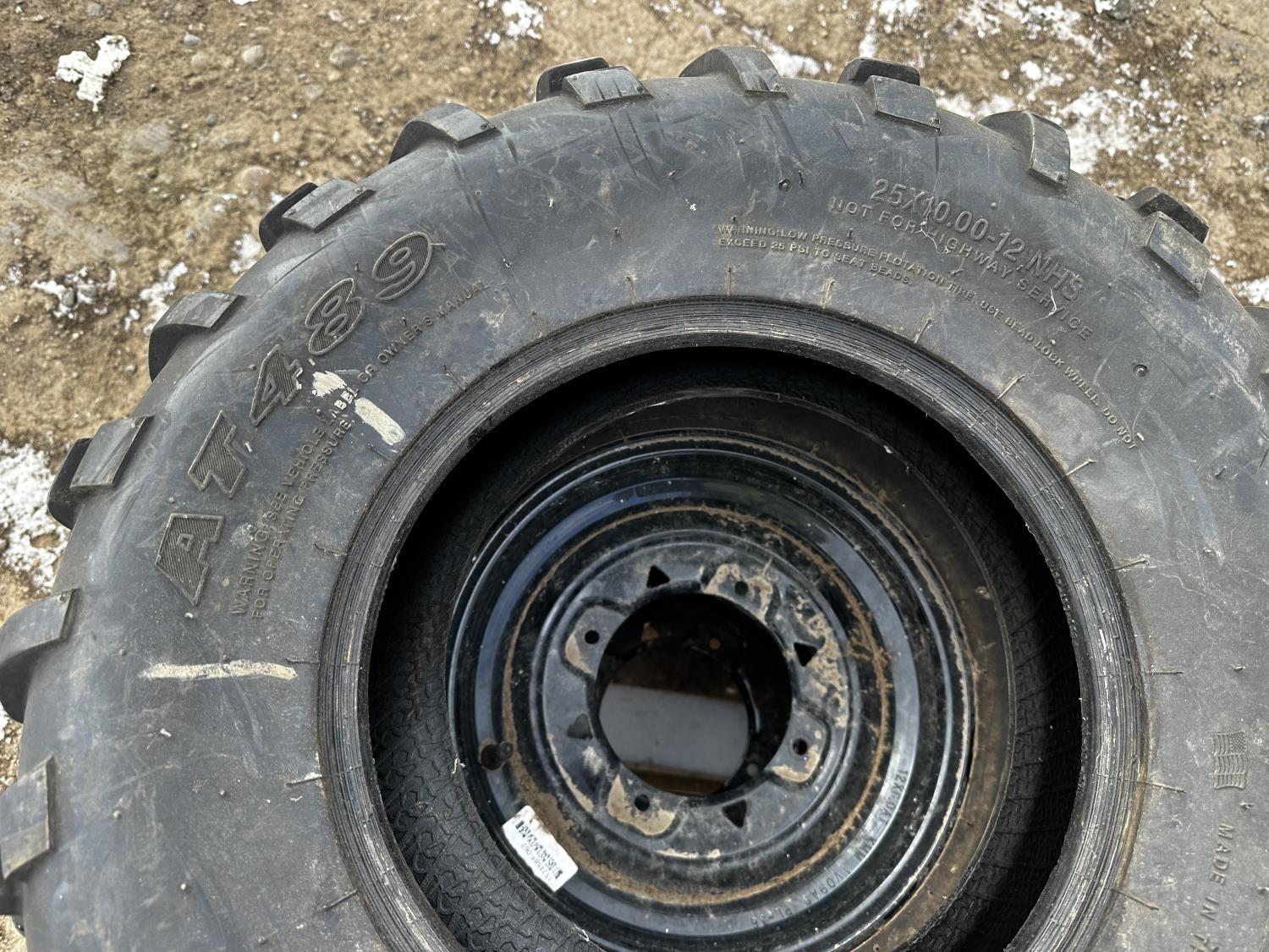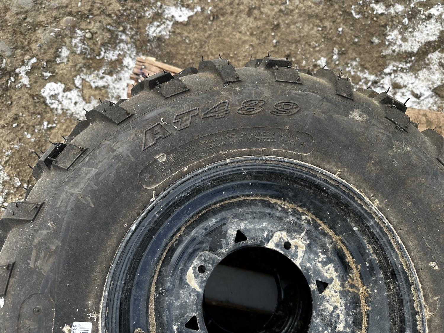 (2) tires w/ rims AT489, (1) tire 489, (1) rim 13 inch x 8.5 inch (1) 7 inch x 13 inch