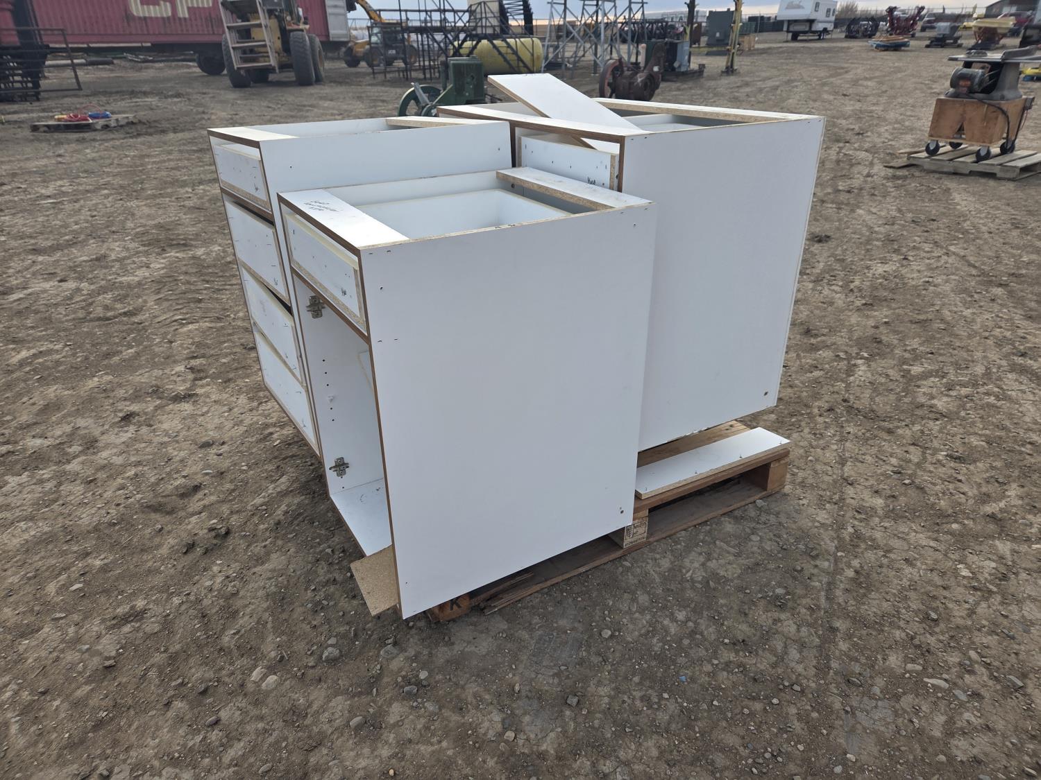 Dimensions - Small 4 drawer counter: 2 ft by 2 ft by 30-1/4 inch tall, Large counter: 3 ft by 2 ft by 35 inch tall, Cabinet: 24 inch by 19- 1/2 inch by 30-1/4 inch tall