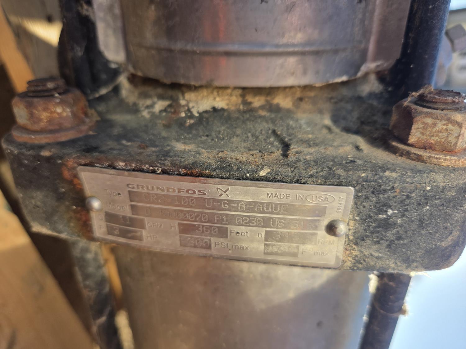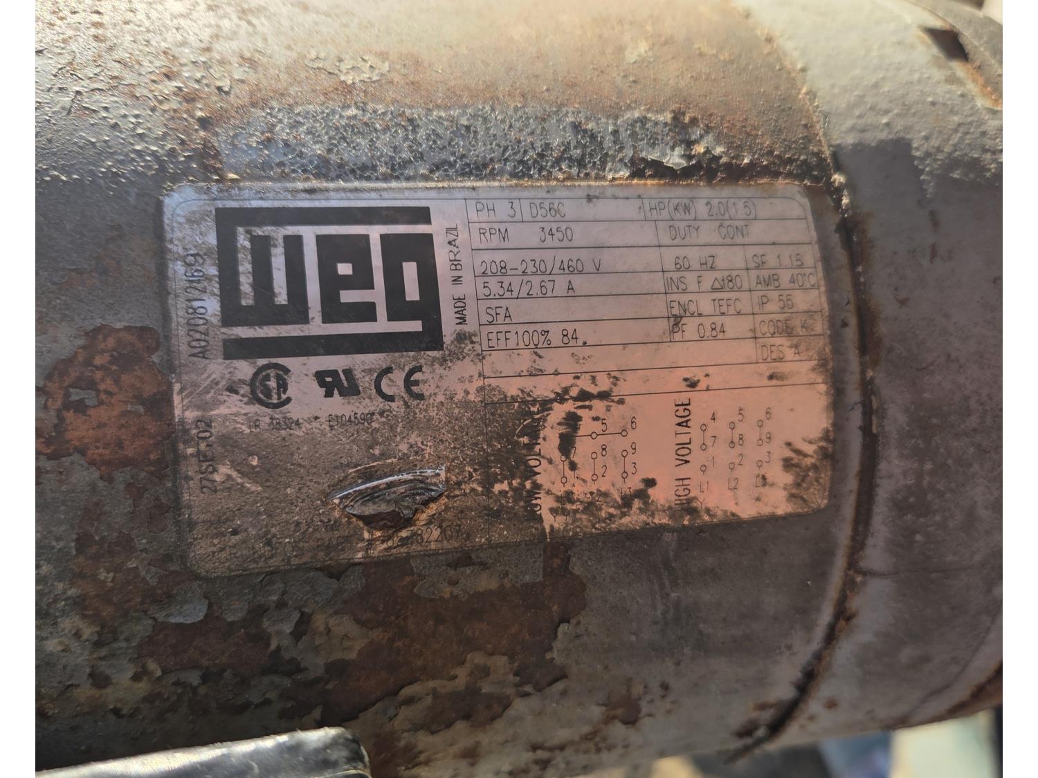 Jacuzzi pump model 2JX370, and WEG 2HP, 3-phase electric motor, and Grundfos model CR2-100 U-G-a-AUUE pump, and AO. Smith C48M2EC11C2 electric motor