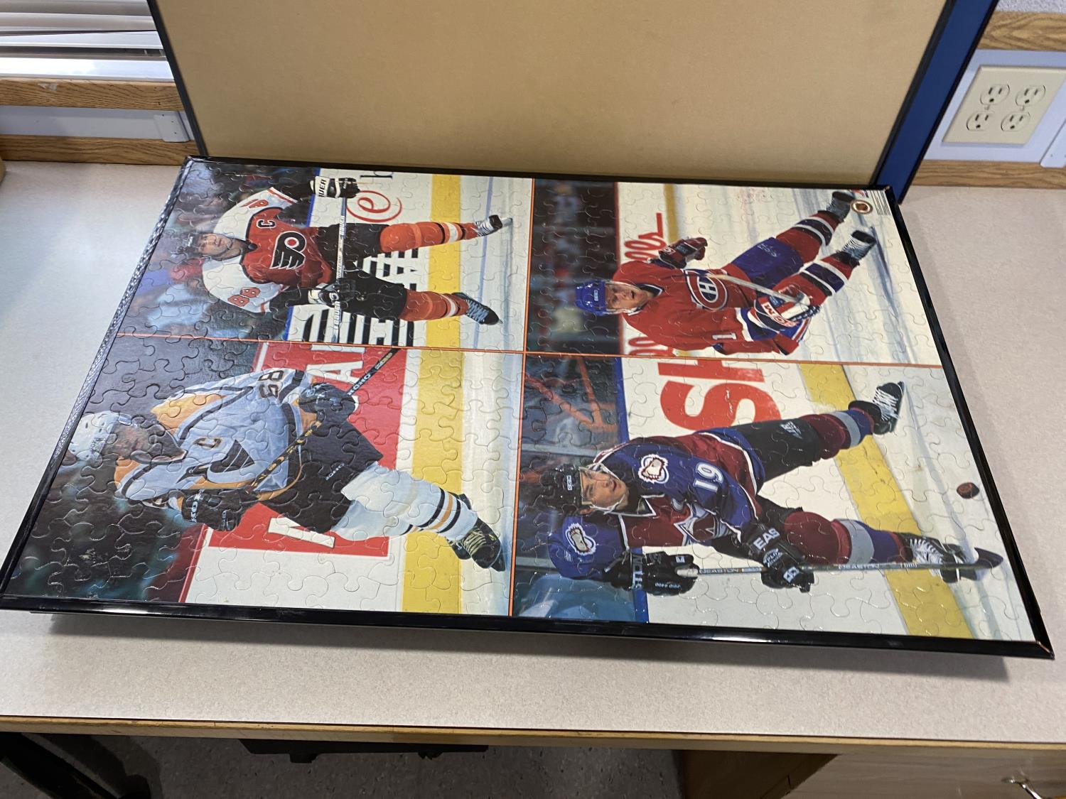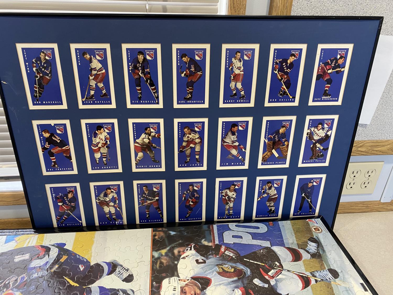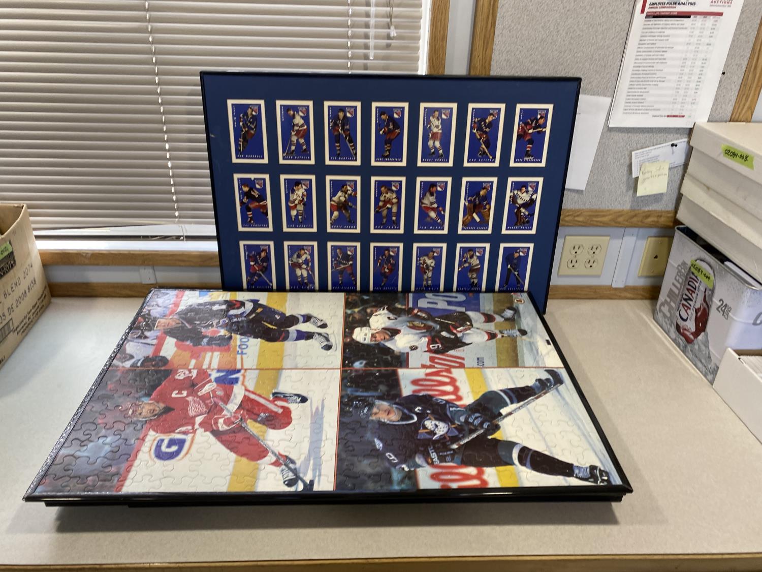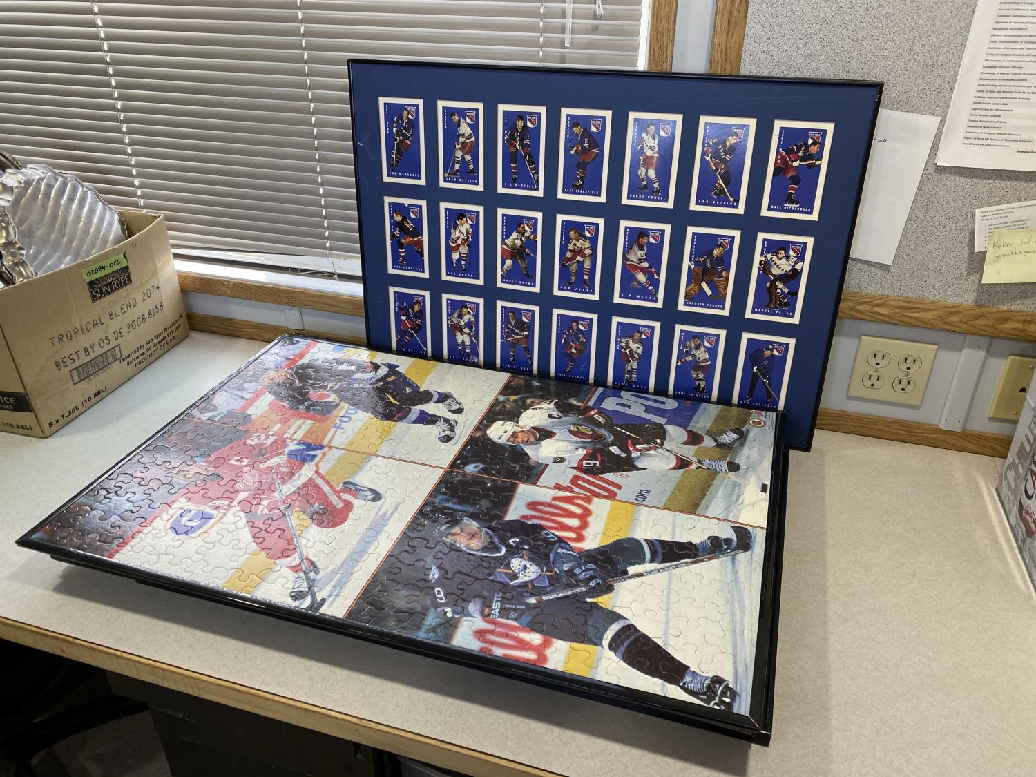 includes (2) completed framed hockey puzzles