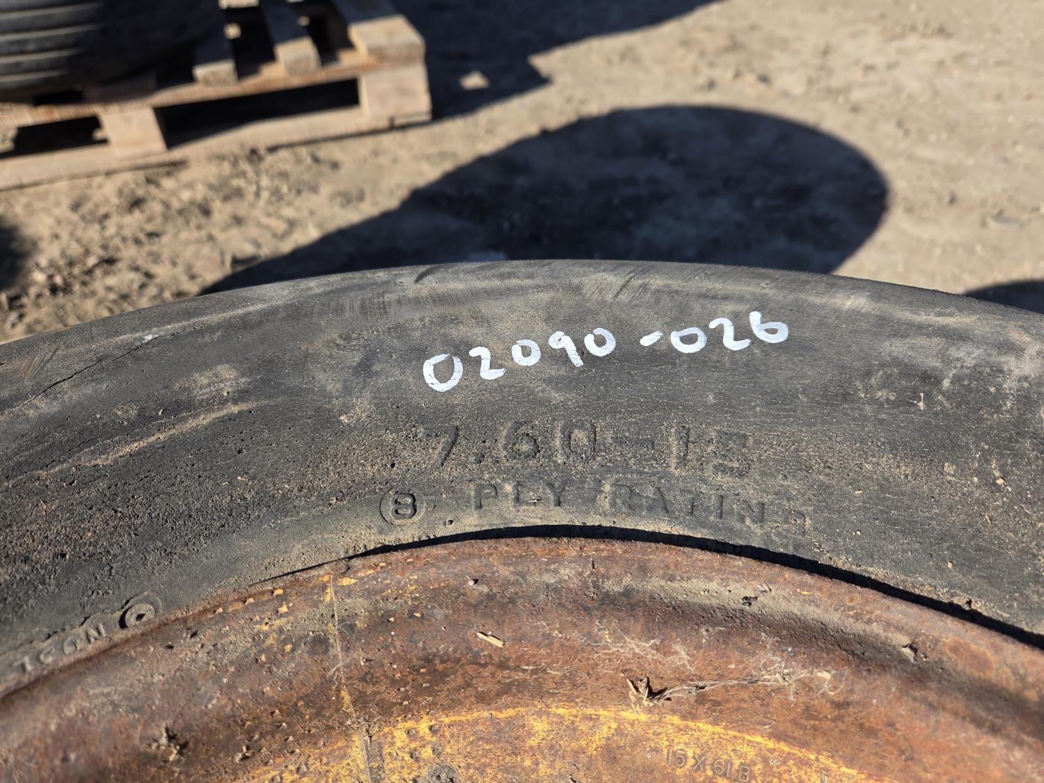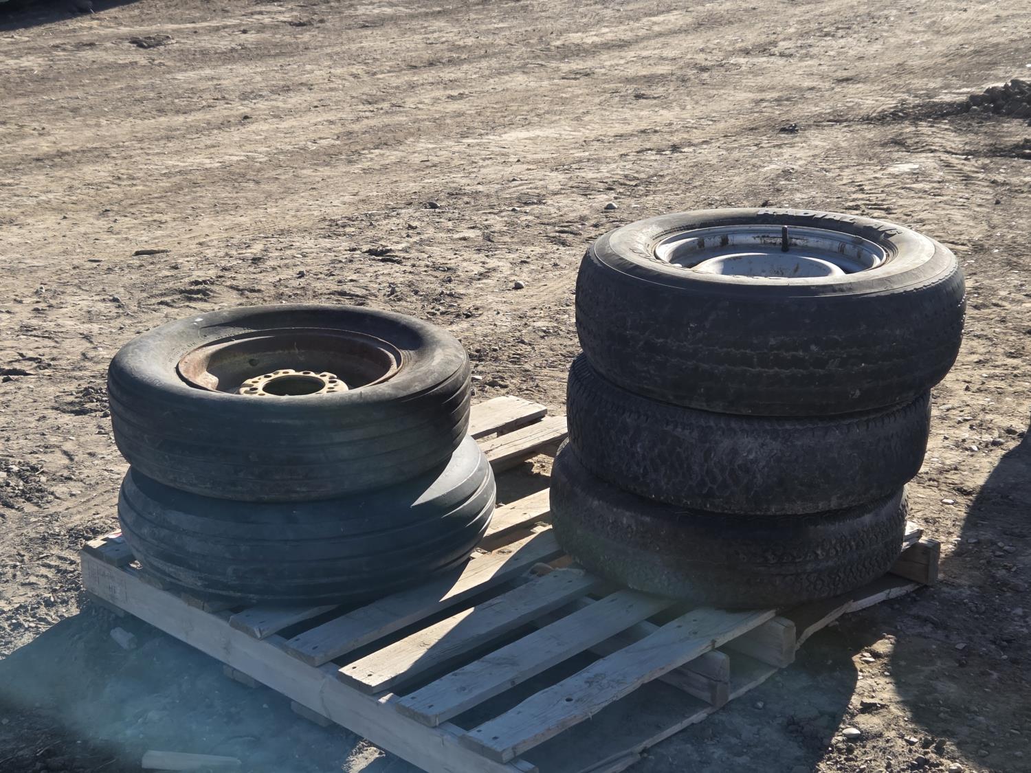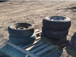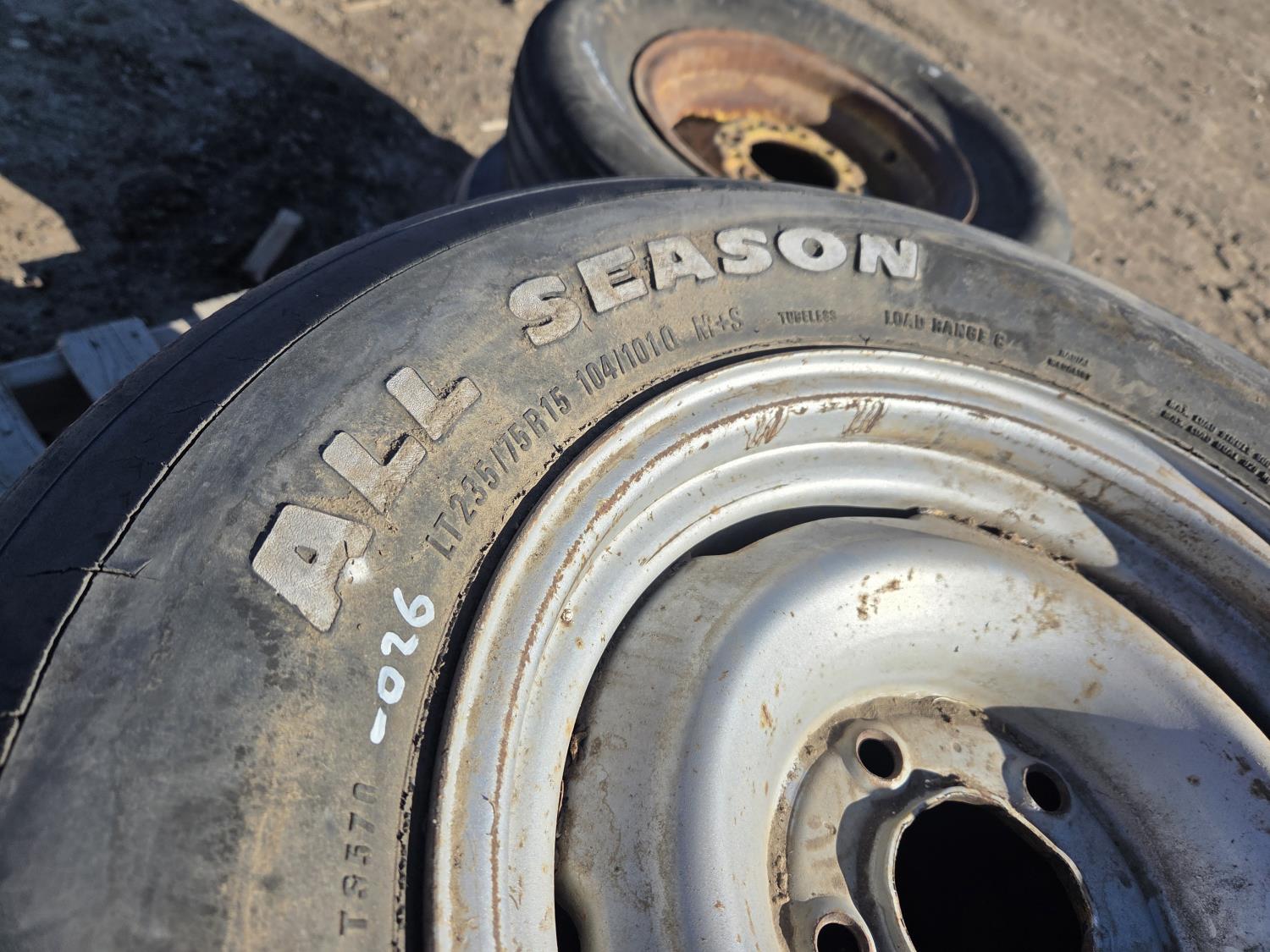 Qty of (2) 7.60-15 tires w/ rims, qty of (3) LT235/75R15 tires w/ rims
