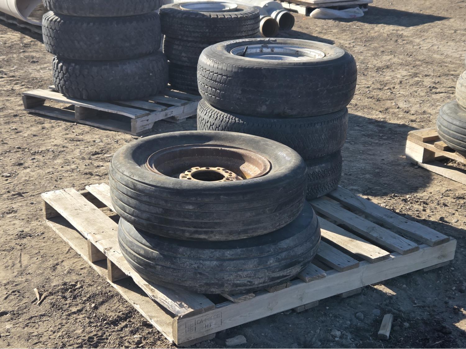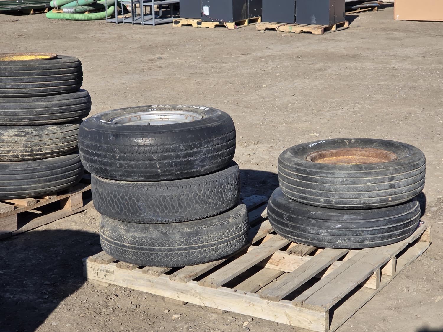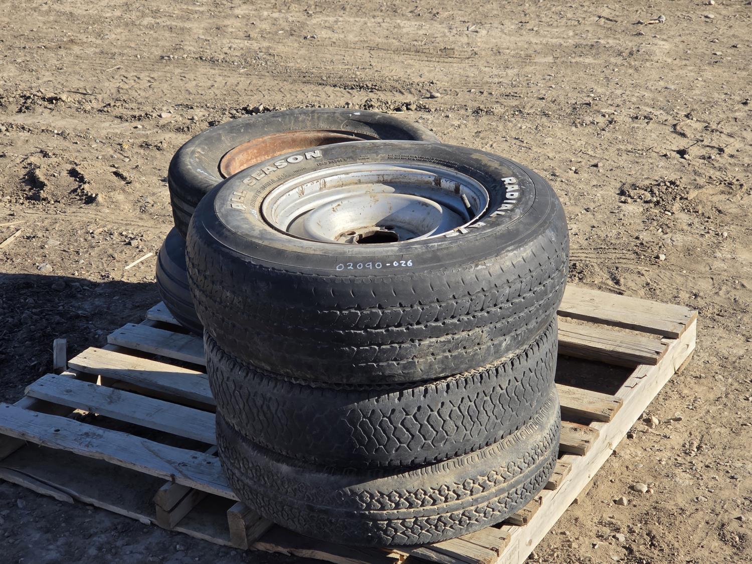 Qty of (2) 7.60-15 tires w/ rims, qty of (3) LT235/75R15 tires w/ rims
