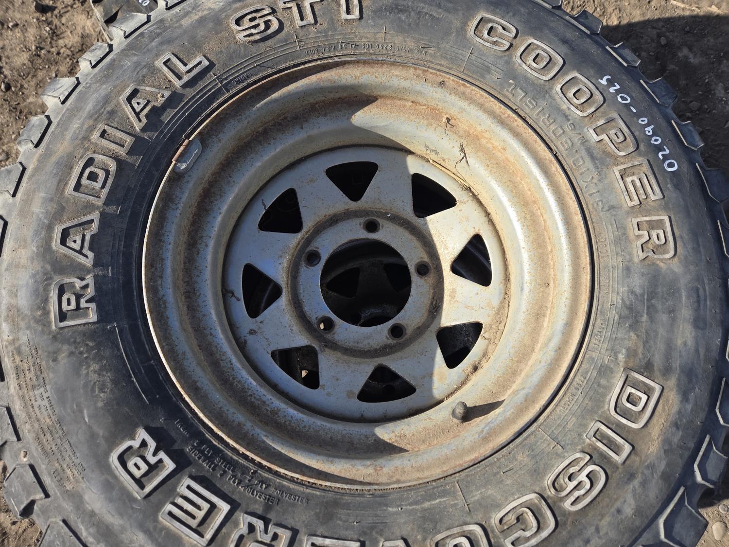 Qty of (3) 8-14.5LT no rims, hub only. Qty of (3) 31X10.50R15LT