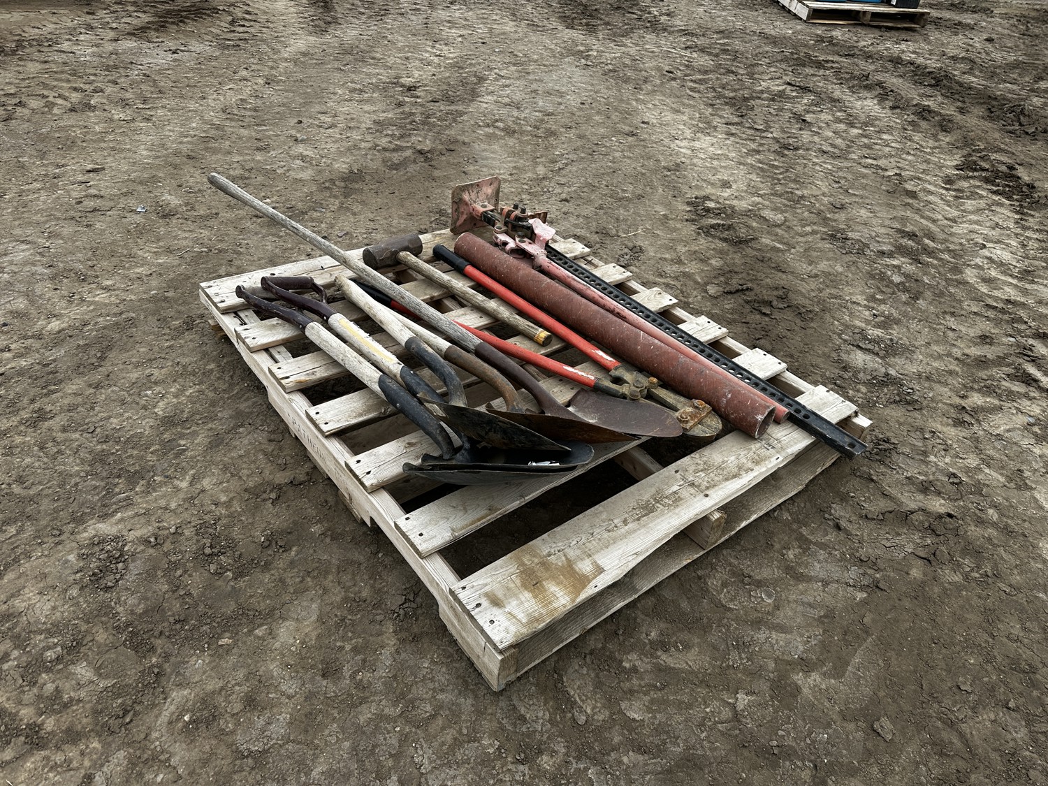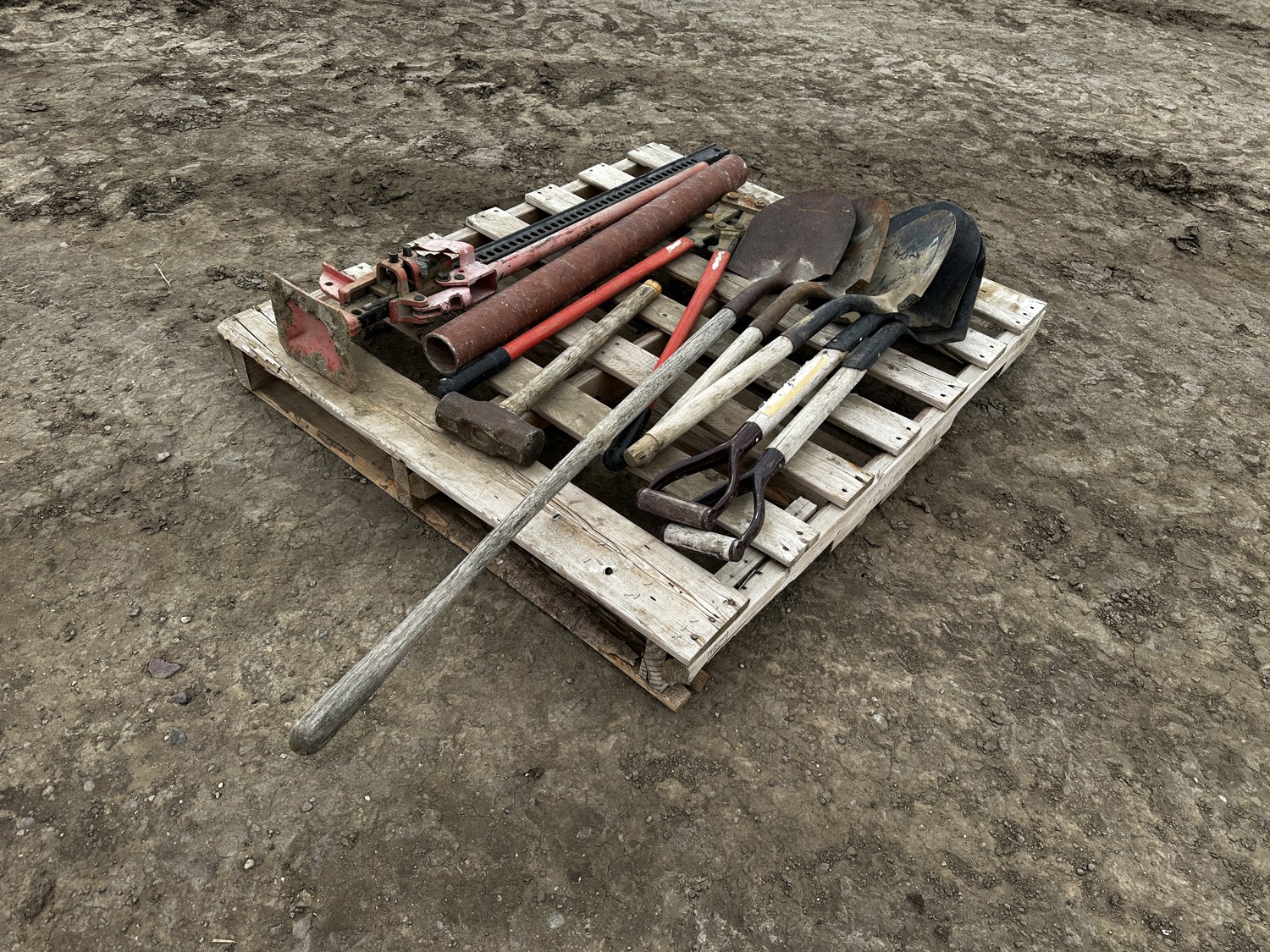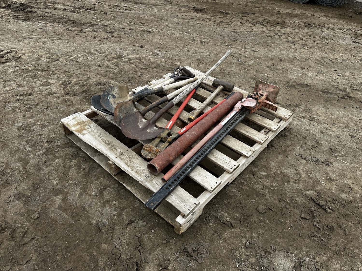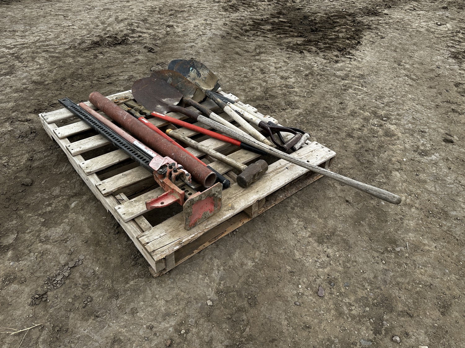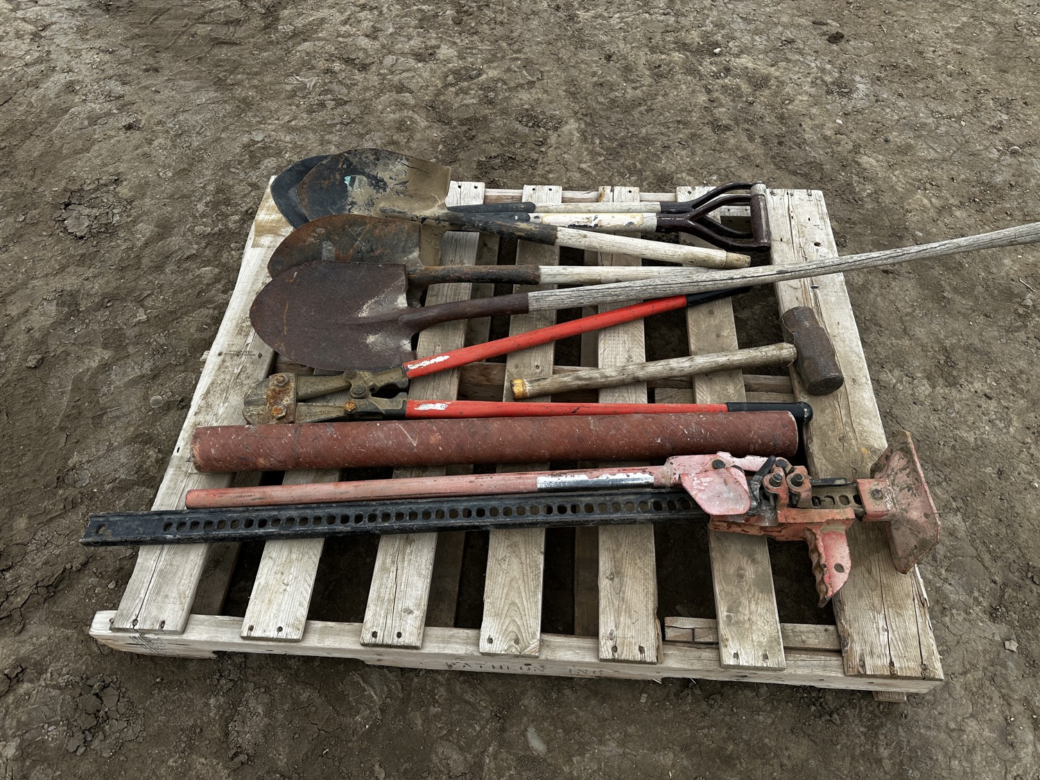 includes (4) shovels, (1) sledge hammer, (1) Jack, (1) bolt cutters, miscellaneous steel pipe