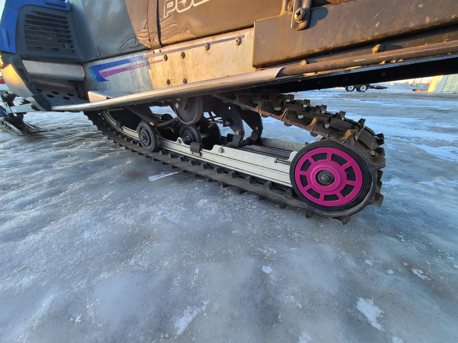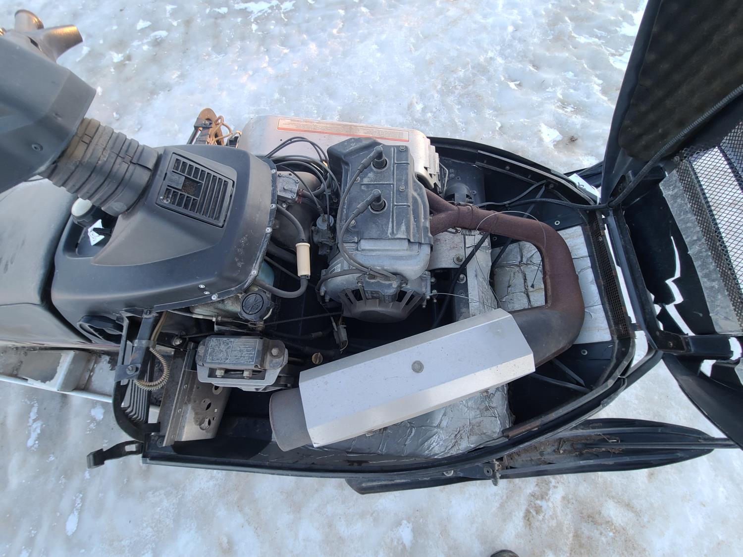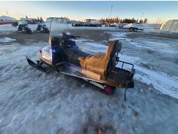 340 cc Polaris 2 cylinder 2 stroke engine, windshield, 2 up seat with backrest, 126 inch long track, 1 inch paddles
