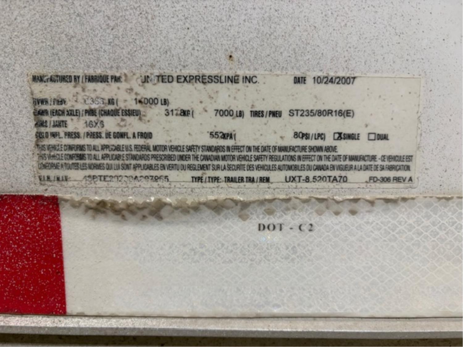 197 2008 United Expressline 20 Ft T/A Spray Foam Insulation Trailer