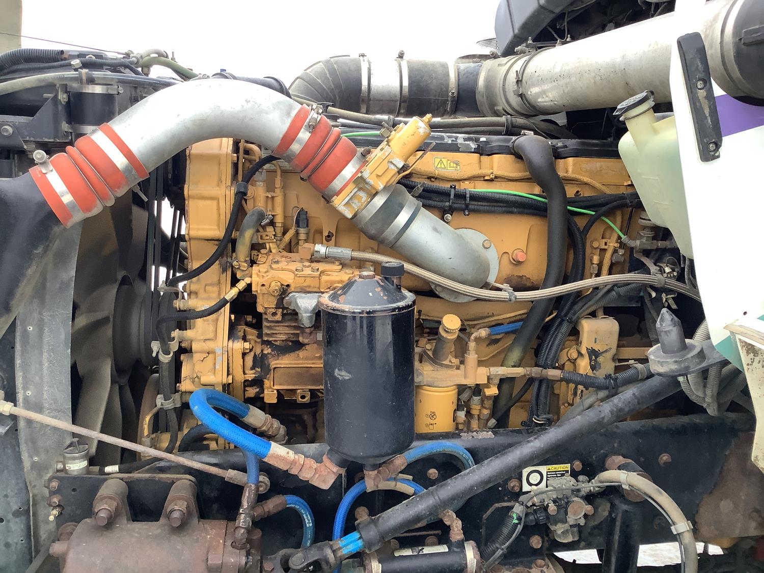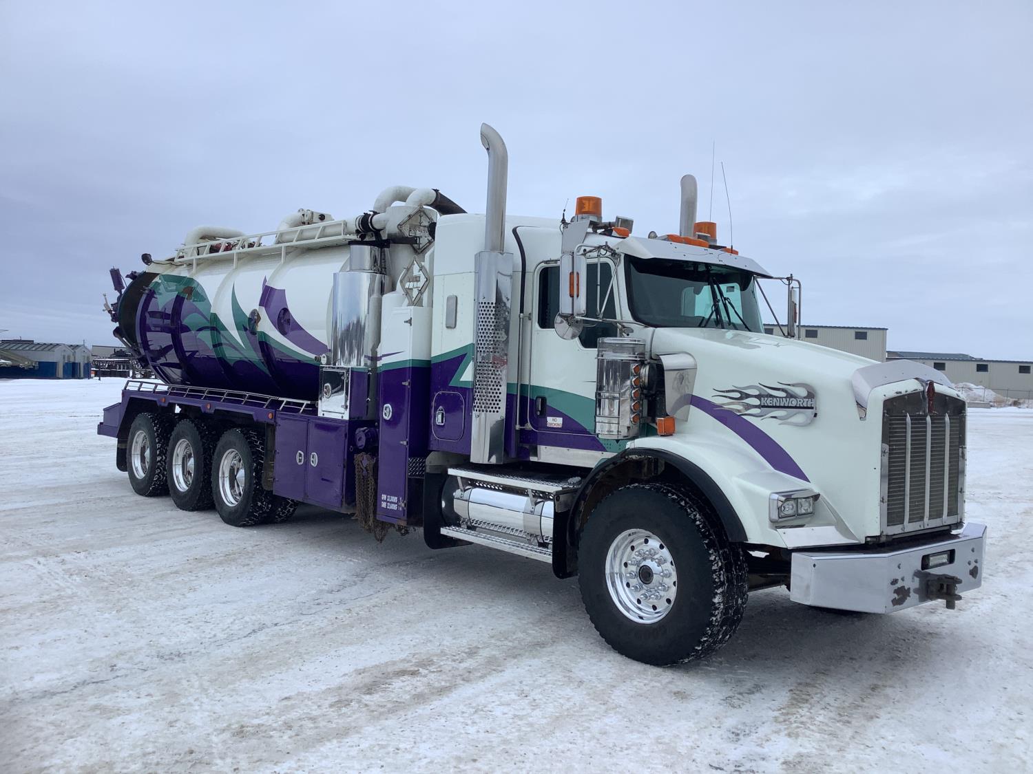 Cat C-15 3406 MBM single turbo 500 HP engine, 18 speed manual transmission, c/w 2 speed aux transmission, 20,000 lb front axle w/dual steering boxes, 58,000 PB rear axles, full lockers, New way air ride suspension, 38 inch Aerocab flat top sleeper, Roda air shut down, beacon lights, rear pintle hitch, 4.33 gears, aluminum wheels, 445/65R22.5 front tires, 11R24.5 rear tires, Streel head Manufacturing TC407 split tank, 4.1 cube front compartment, 11.6 cube rear waste material compartment, hydraulic front hoist, hydraulic rear lift gate, 820 Hibon vac unit, 500,000 BTU boiler, Cat 3560 wash pump, wash hose and reel, heated compartments, rear mounted TC 300 hydraulic knuckle boom picker, all new inspections.
