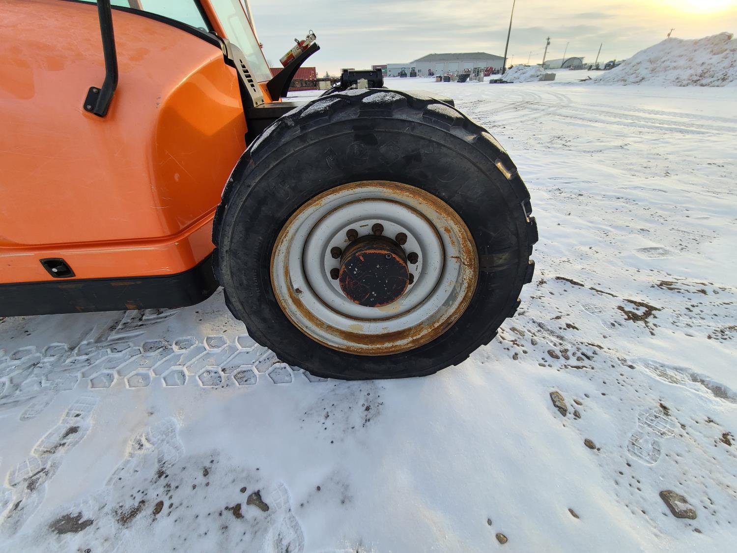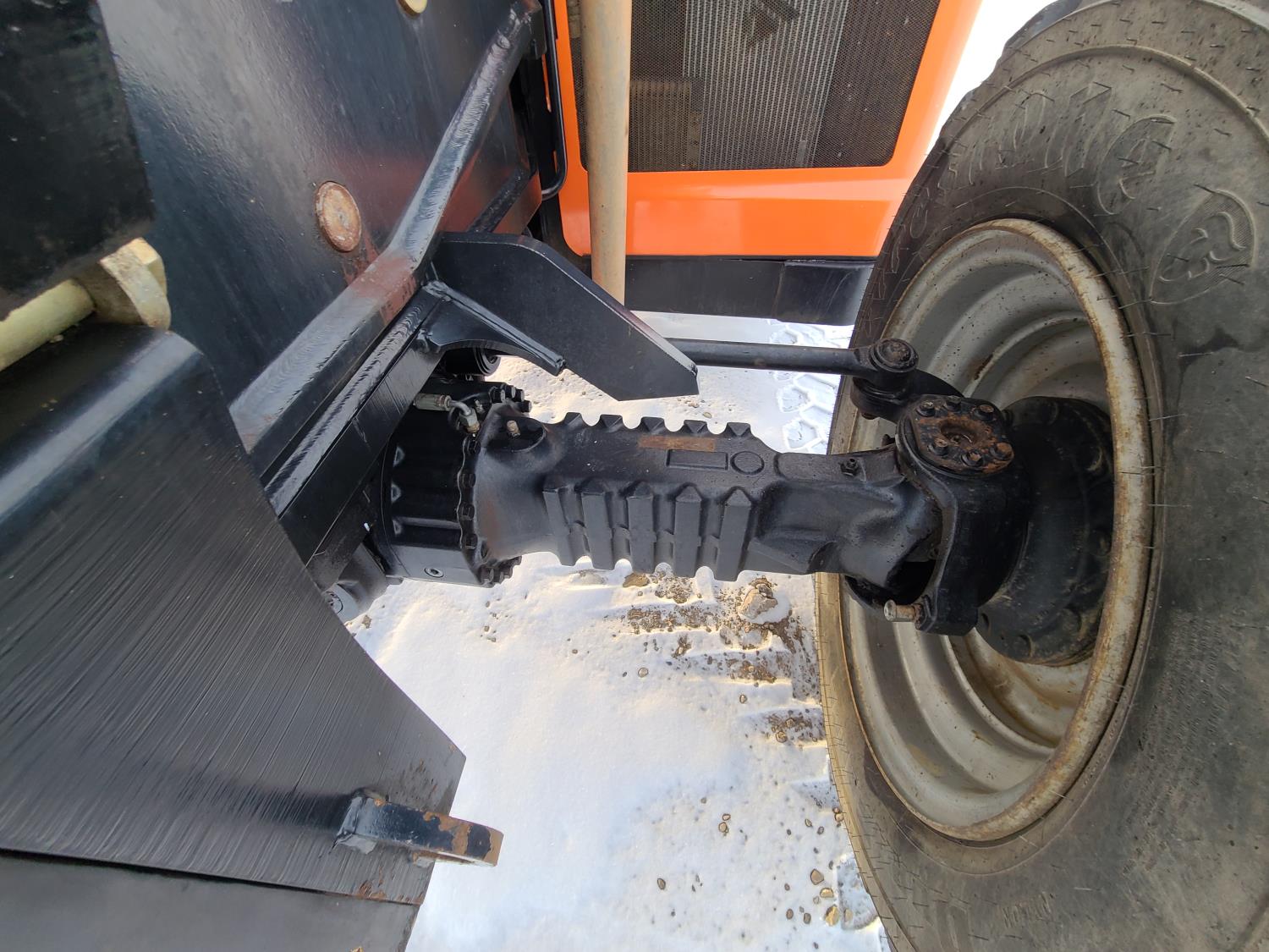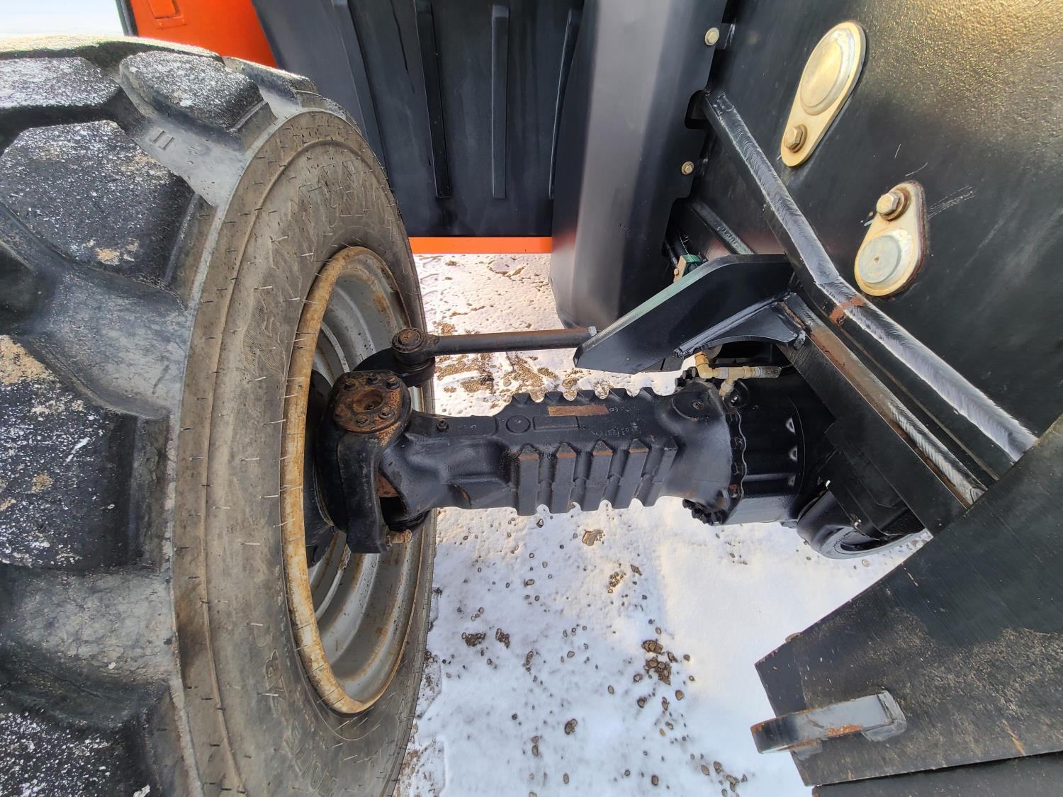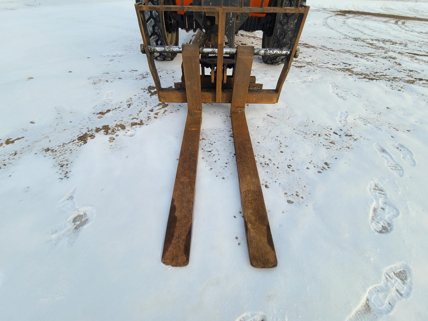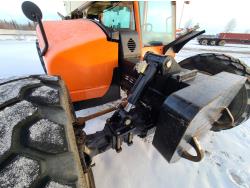 43 ft max lift height, 30 ft 6 inch max reach, Enclosed cab, powershift transmission, 3 way steering, 60 inch pallet forks, manual coupler, 1 front auxiliary hydraulics, 4 cyl Diesel engine, 370/75-28 tires