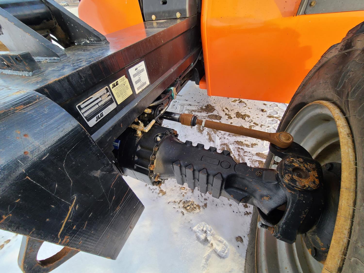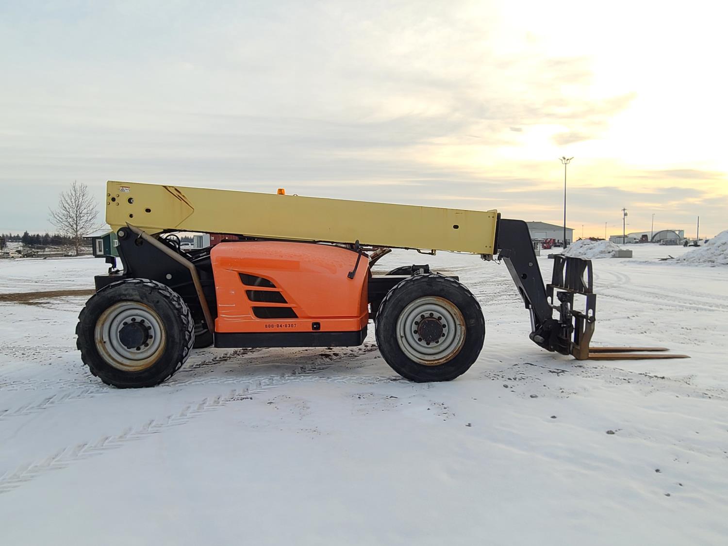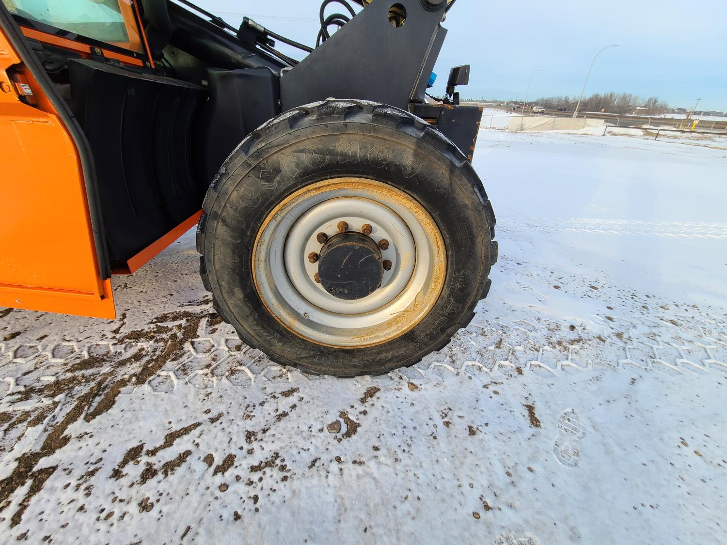 43 ft max lift height, 30 ft 6 inch max reach, Enclosed cab, powershift transmission, 3 way steering, 60 inch pallet forks, manual coupler, 1 front auxiliary hydraulics, 4 cyl Diesel engine, 370/75-28 tires