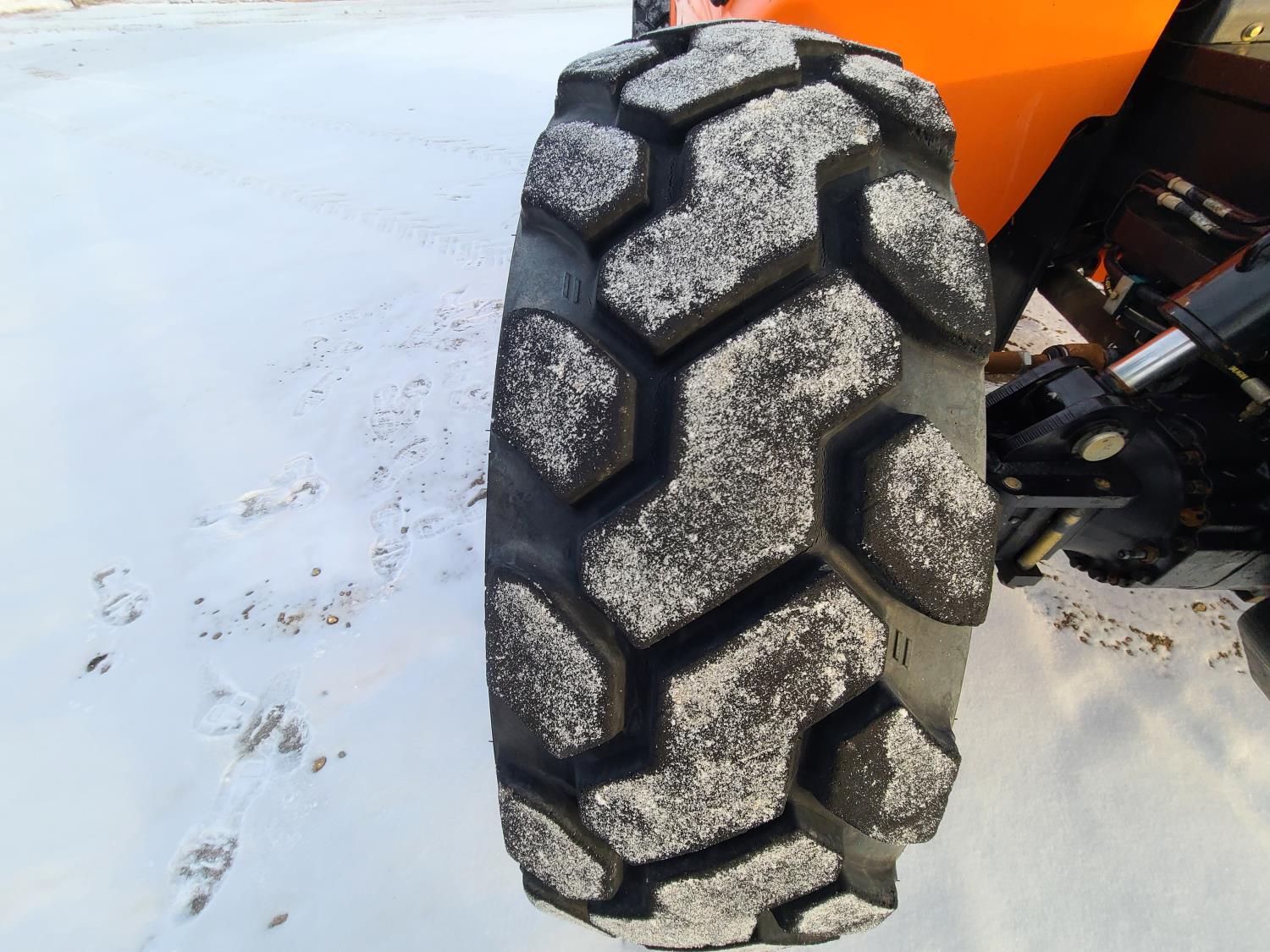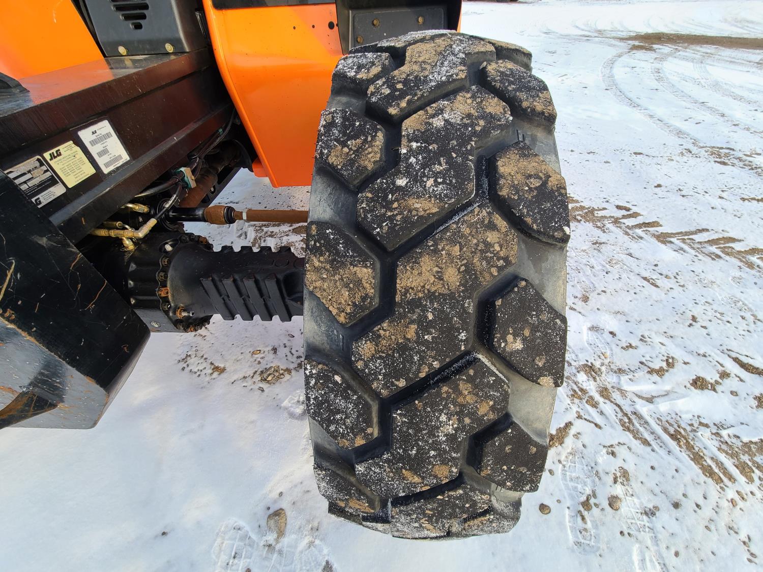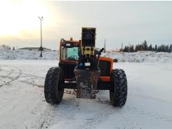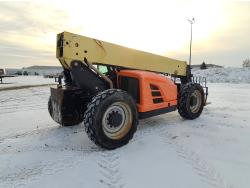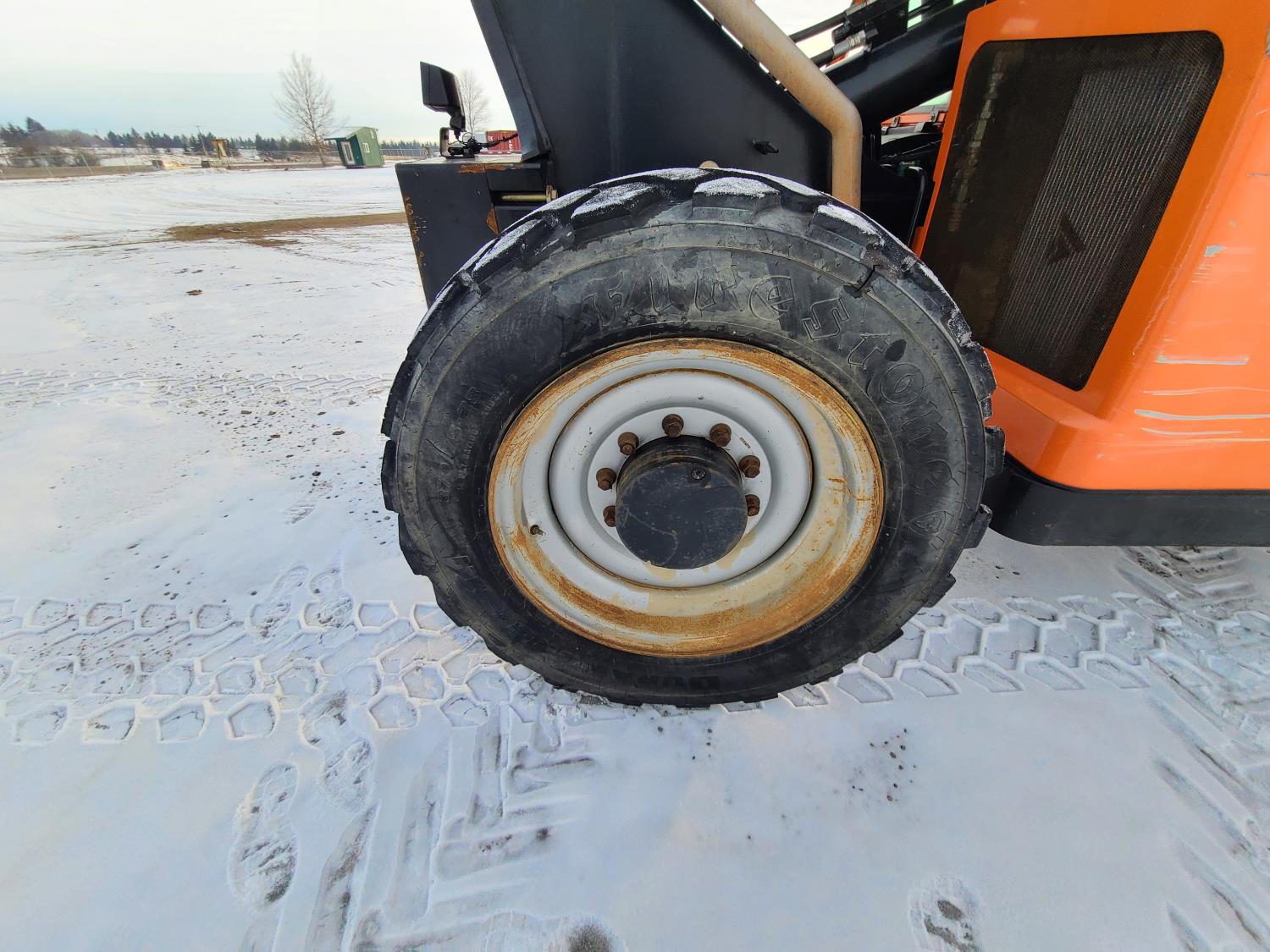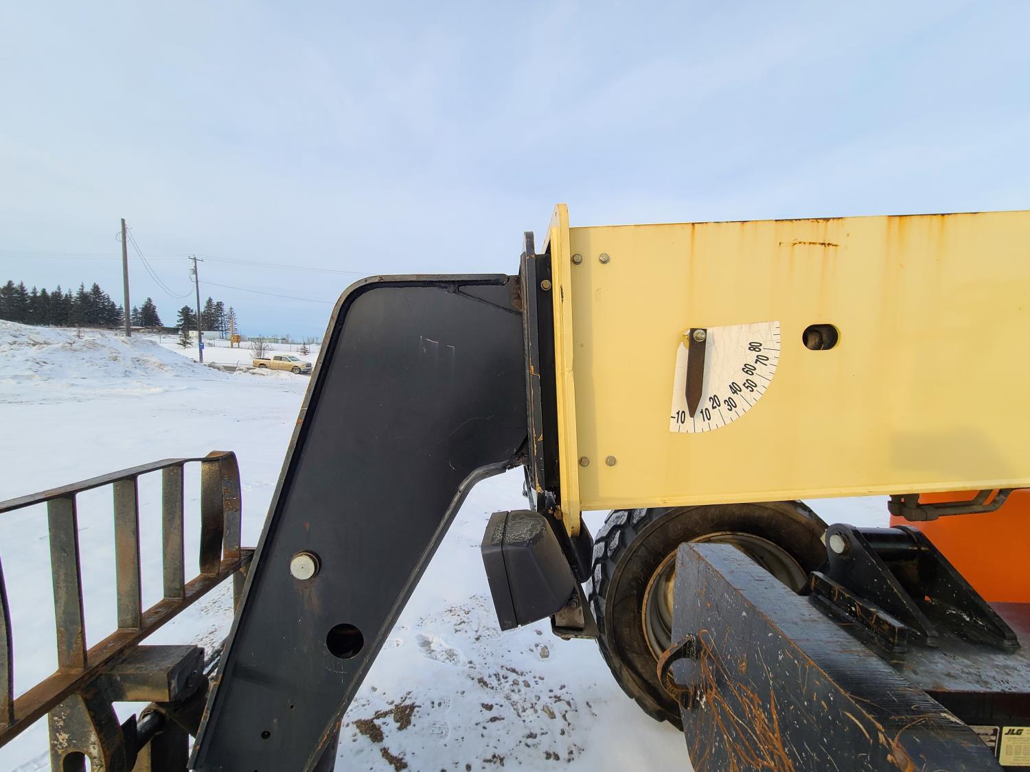 43 ft max lift height, 30 ft 6 inch max reach, Enclosed cab, powershift transmission, 3 way steering, 60 inch pallet forks, manual coupler, 1 front auxiliary hydraulics, 4 cyl Diesel engine, 370/75-28 tires