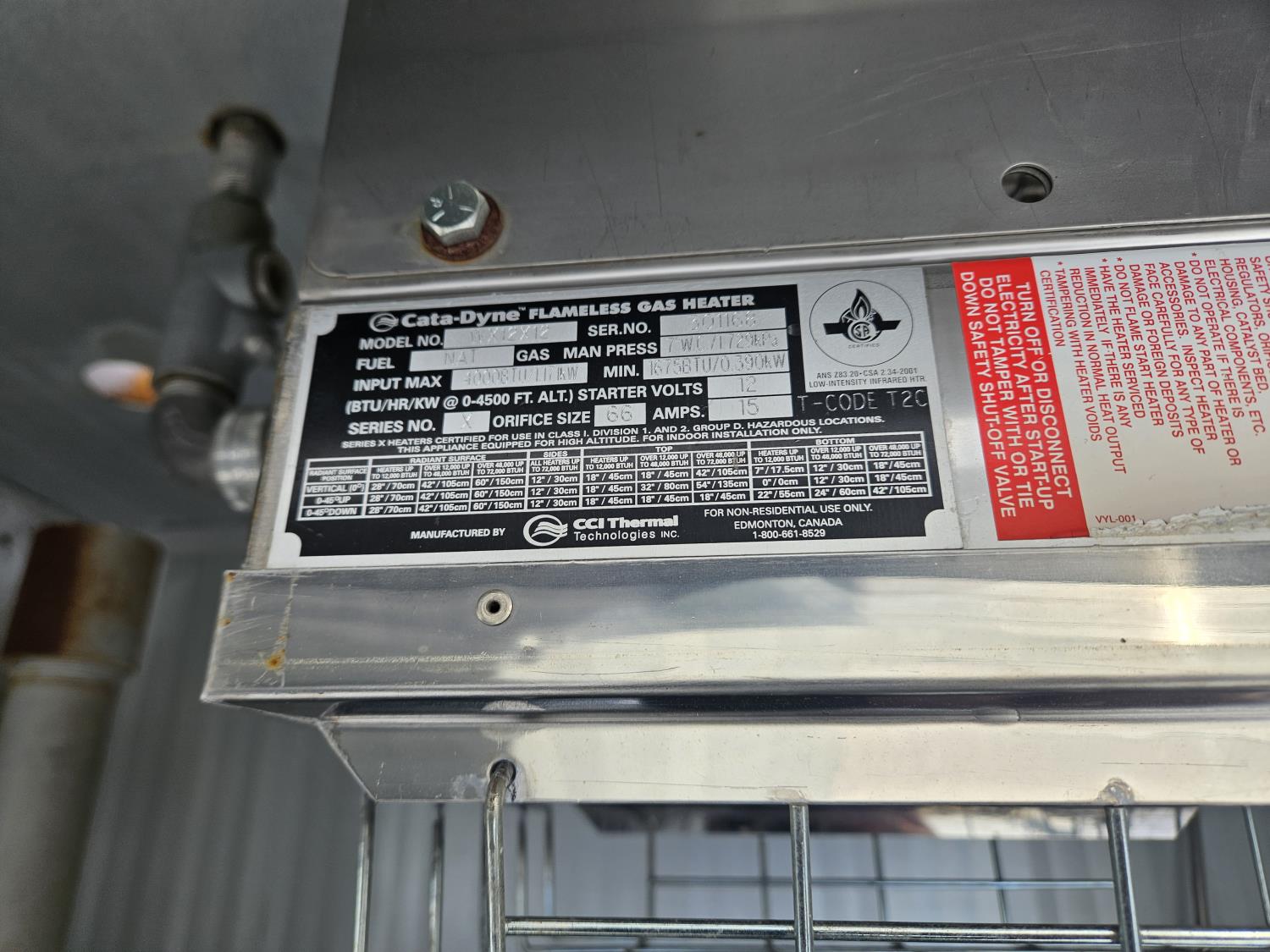 tank 87 inch L x 40 inch W x 32 inch T, 6 ft x 32: shack, Cata-Dyne flameless heater