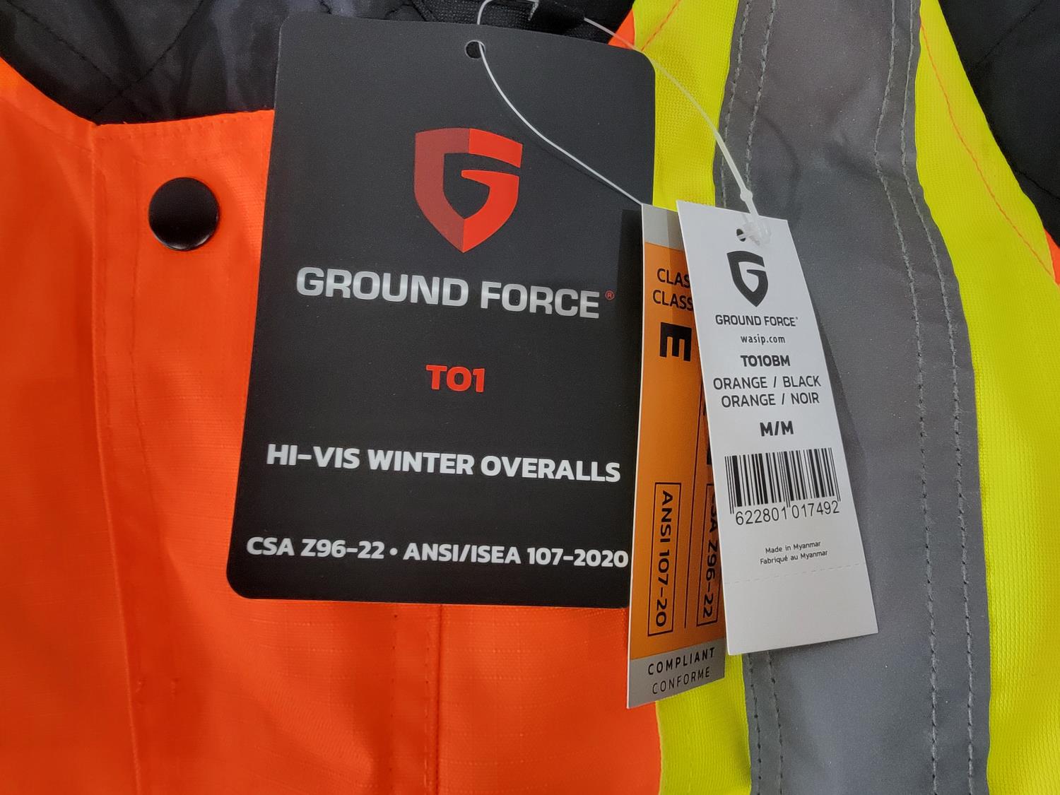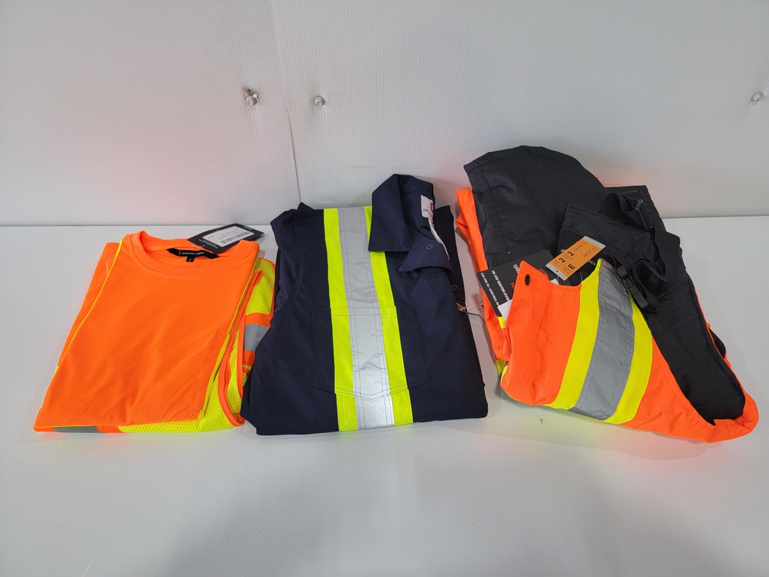 (1) Hi-Vis Mesh Traffic Vest, (1) Size Medium Hi-Vis Shirt, (2) Size 44 M Coveralls and (1) Size Medium Hi-Vis Winter Bibs (Unused)