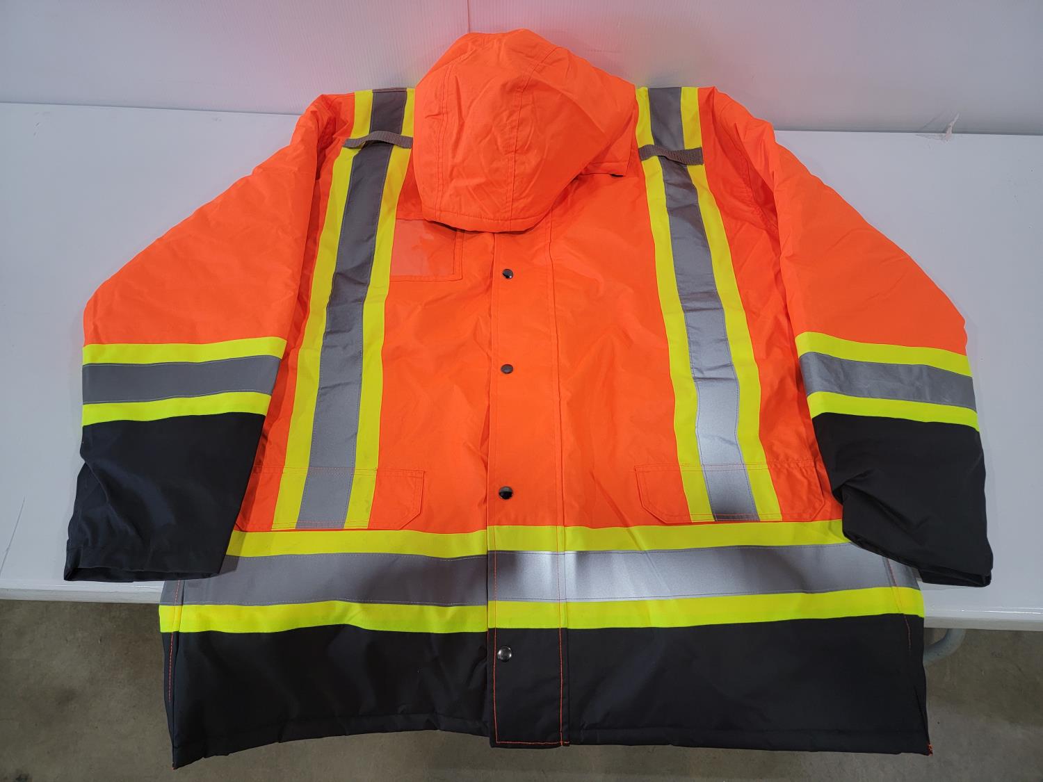 (1) Size 4XL/5XL Hi-Vis Safety Vests, (1) Size 5XL Hi-Vis Winter Parka and (1) Size 54M Hi-Vis Bibs (Unused)