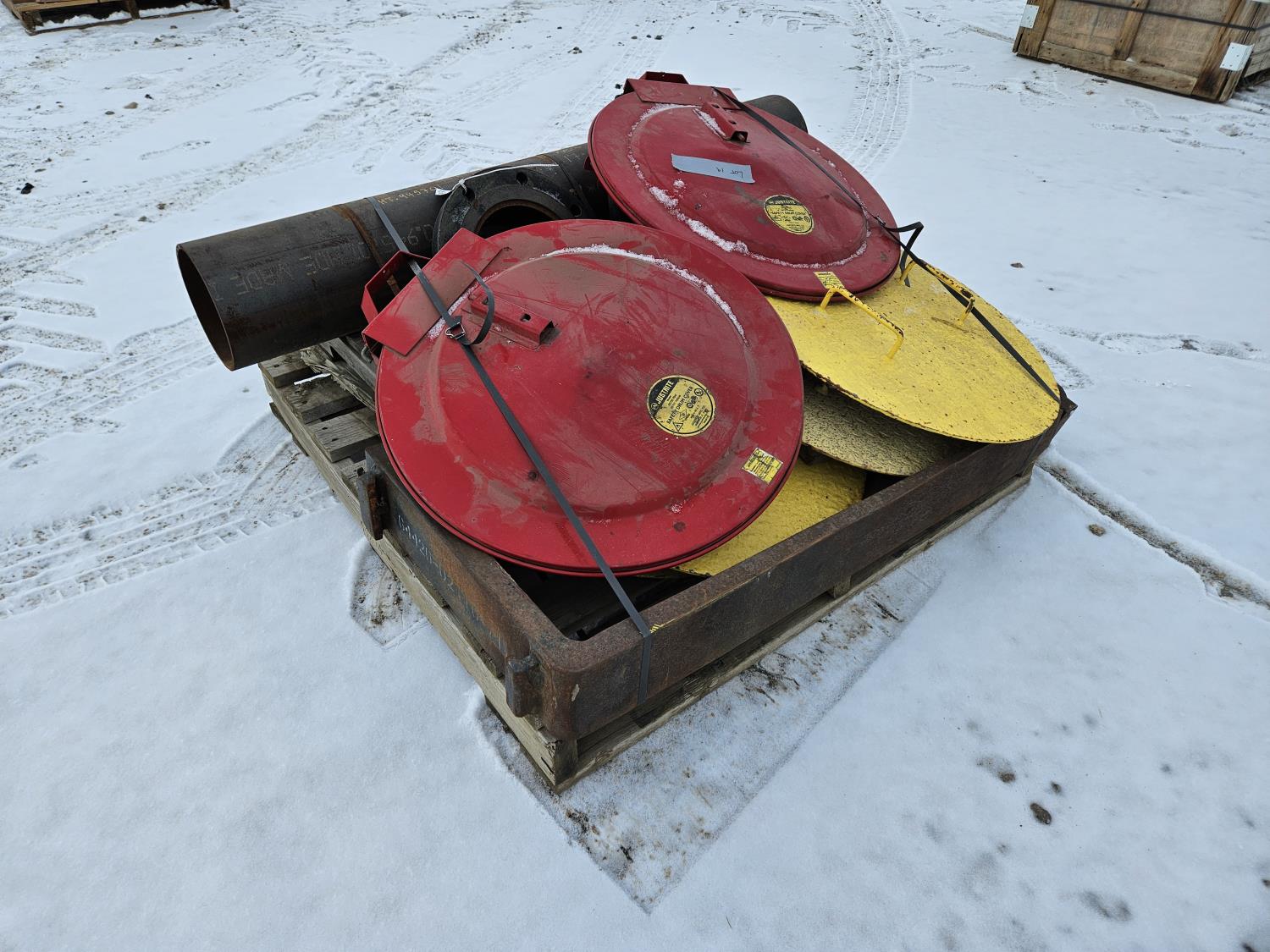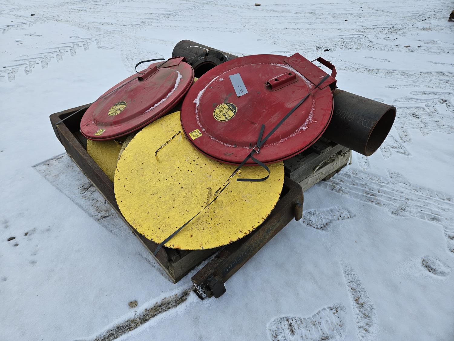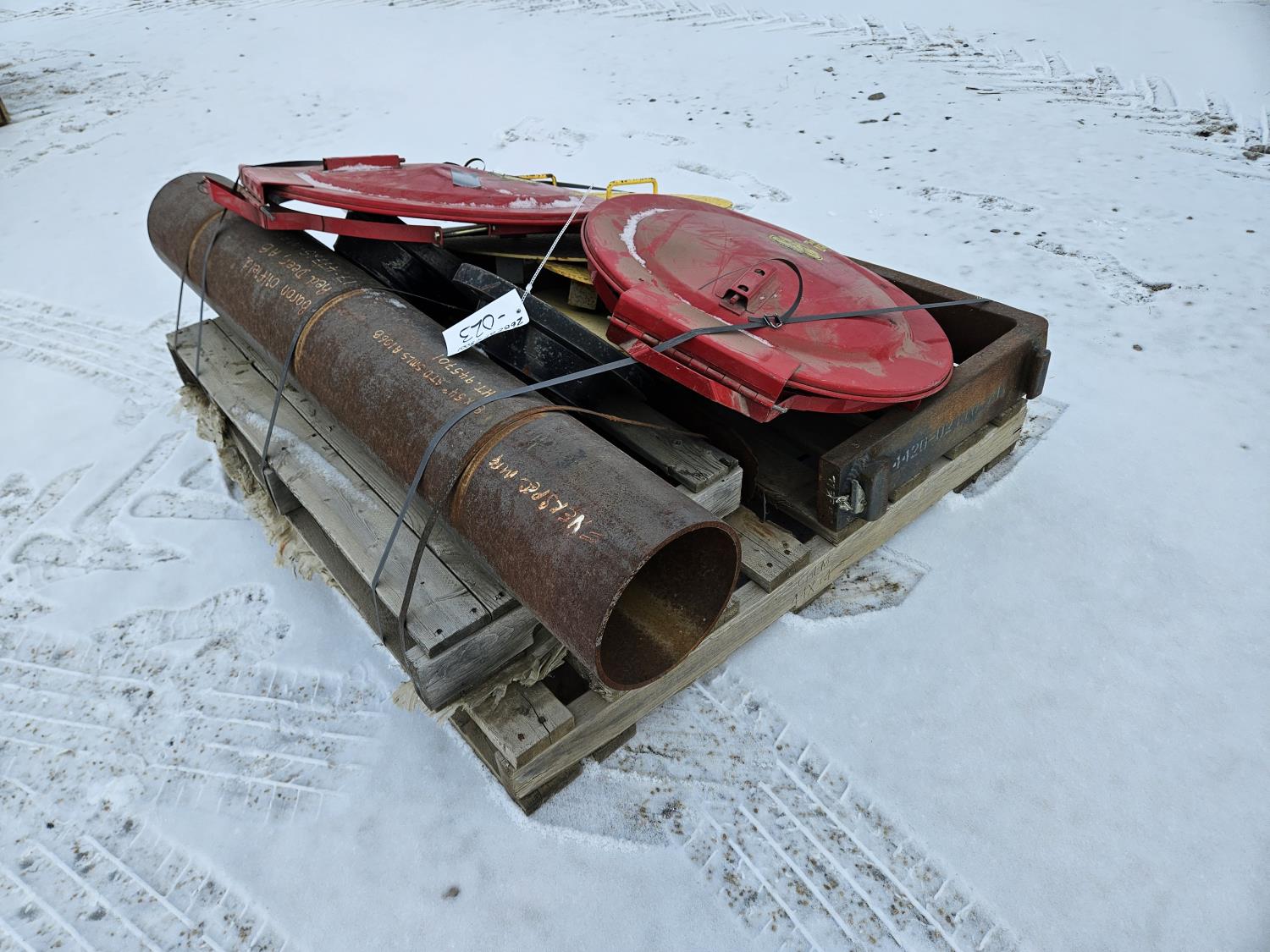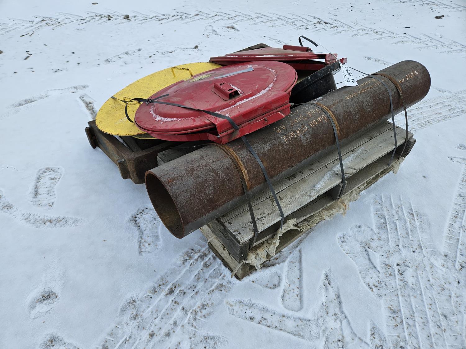 (2) 26 Inch Thief Hatches, (2) 24 Inch Drum Covers, 9 Inch X 54 Inch Steel Pipe,