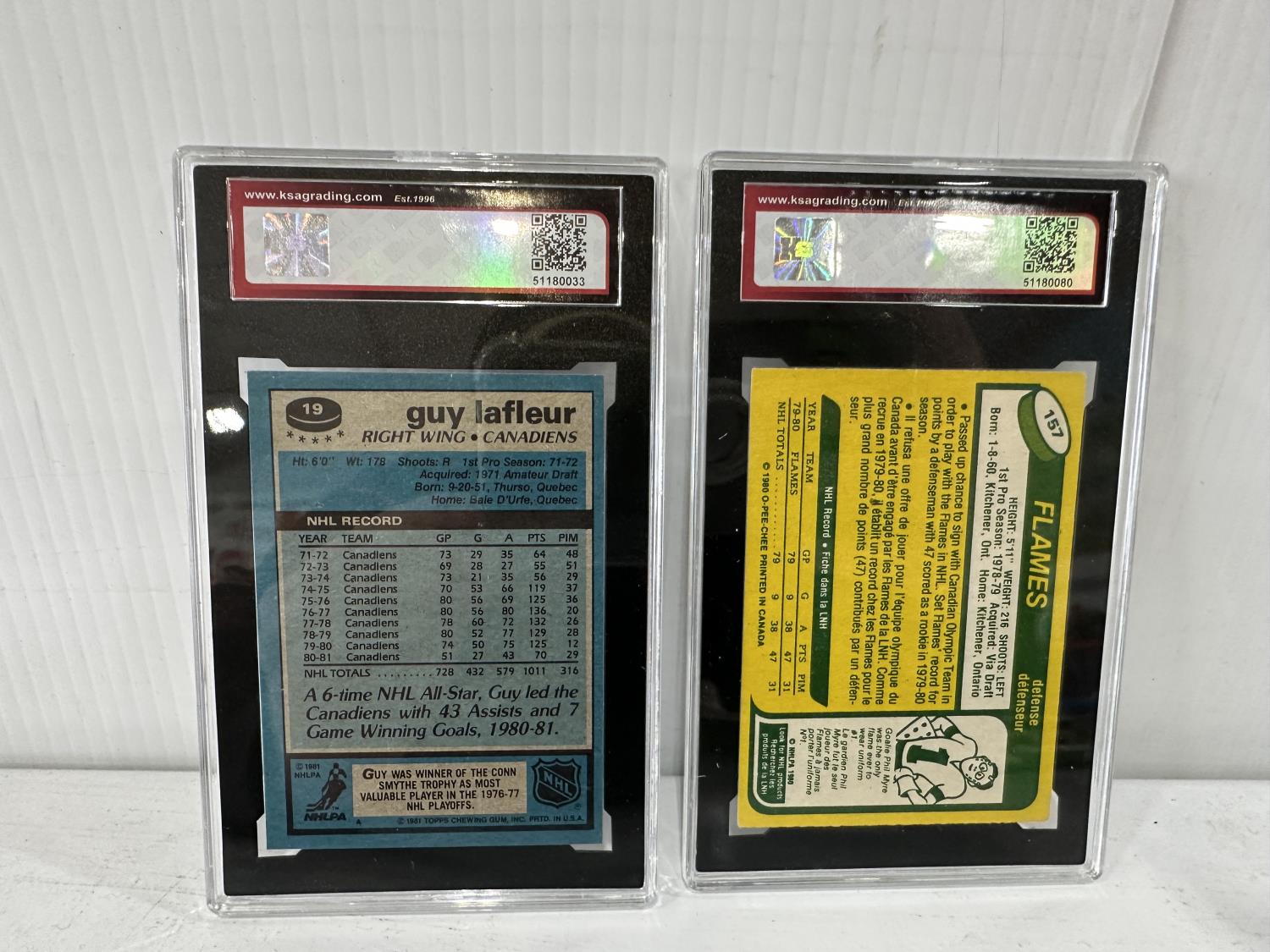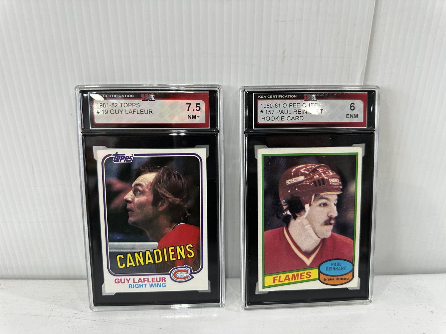 1981-82 Topps #19 Guy Lafleur Hockey Card and 1980-81 O-Pee-Chee #157 Paul Reinhart Rookie Card