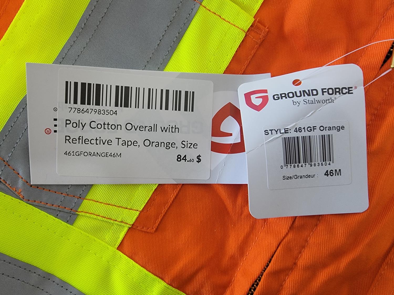 (2) Hi-Vis Traffic Vest, (2) Size Large Hi-Vis Shirts (1) Size 44M Coveralls and (1) Size 46M Bibs (Unused)