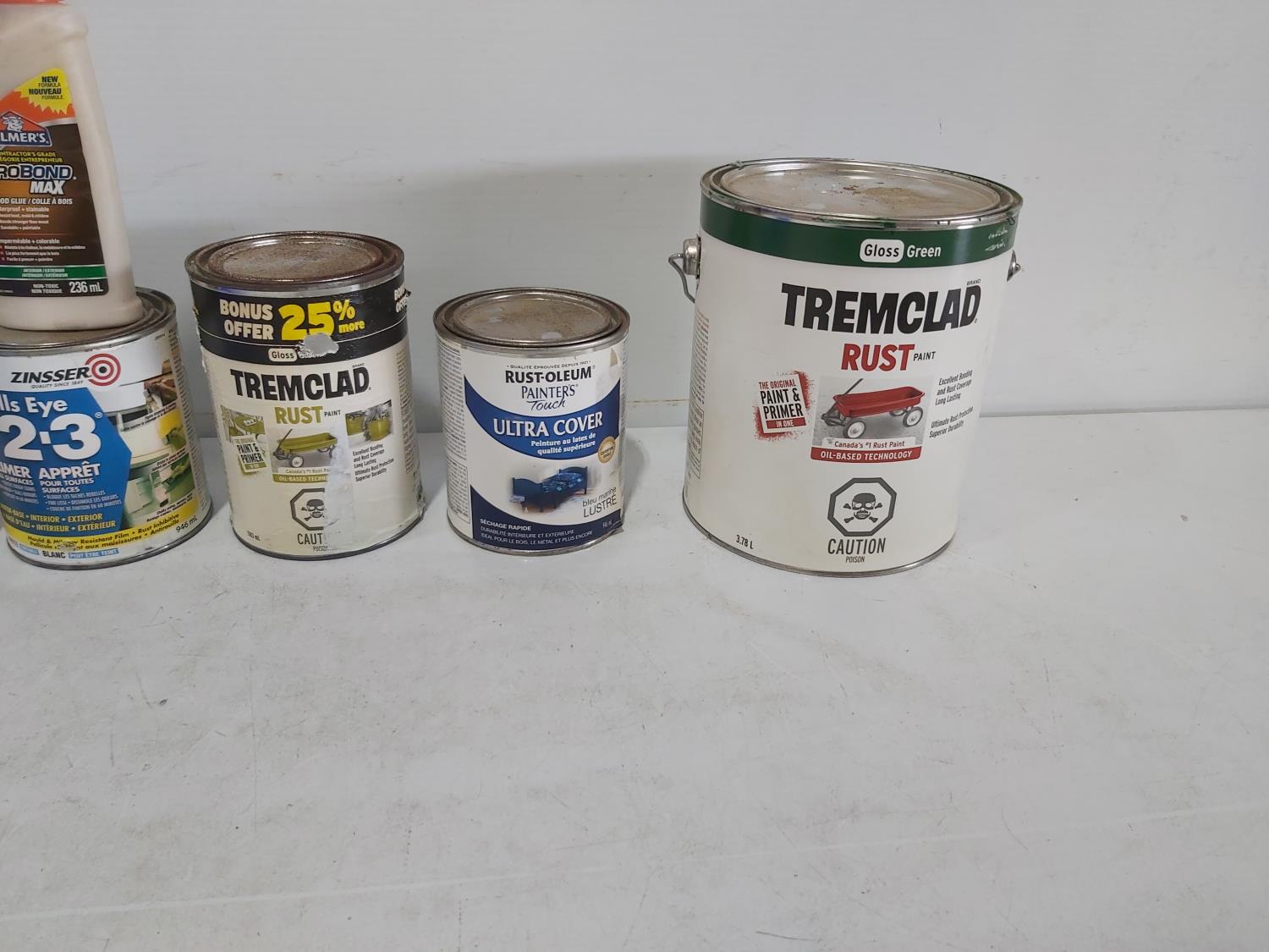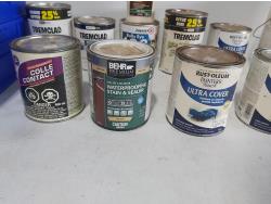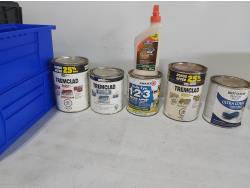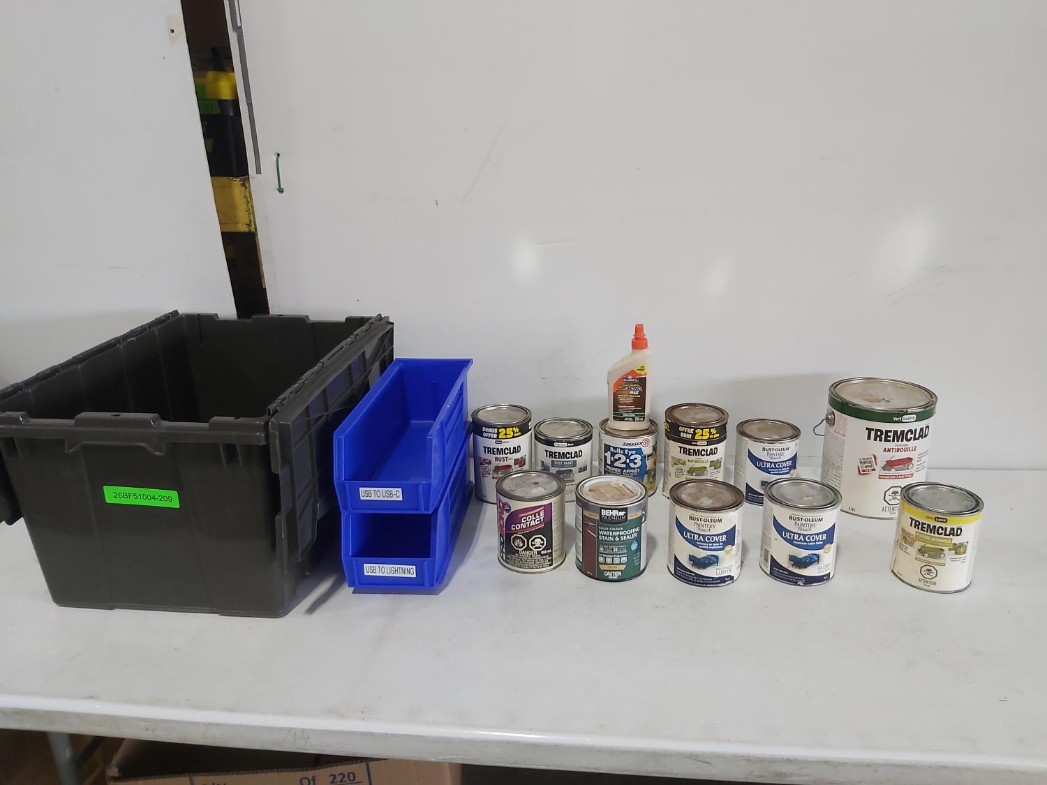 1380 (2) Plastic Stackable Bins, Paint and Contact Glue