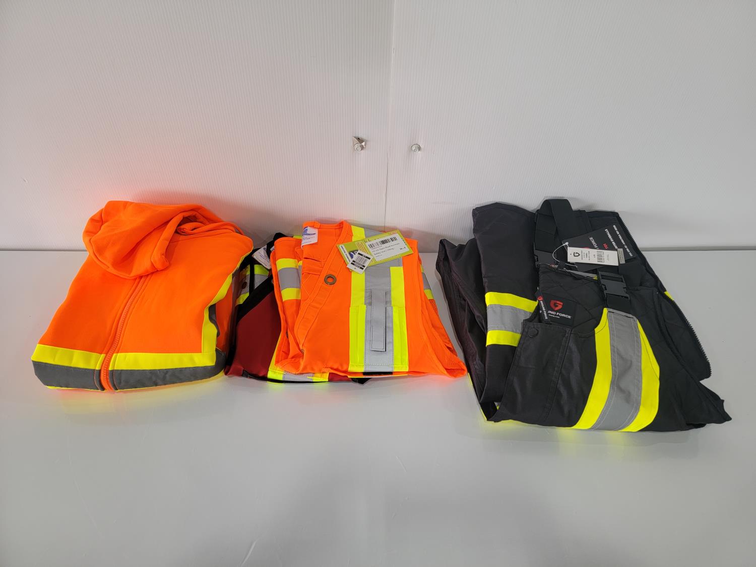 (2) Size Large Hi-Vis Surveyor Vests, (1) Size Large Hi-Vis Hoodie and (1) Size Large Hi-Vis Winter Bibs (Unused)