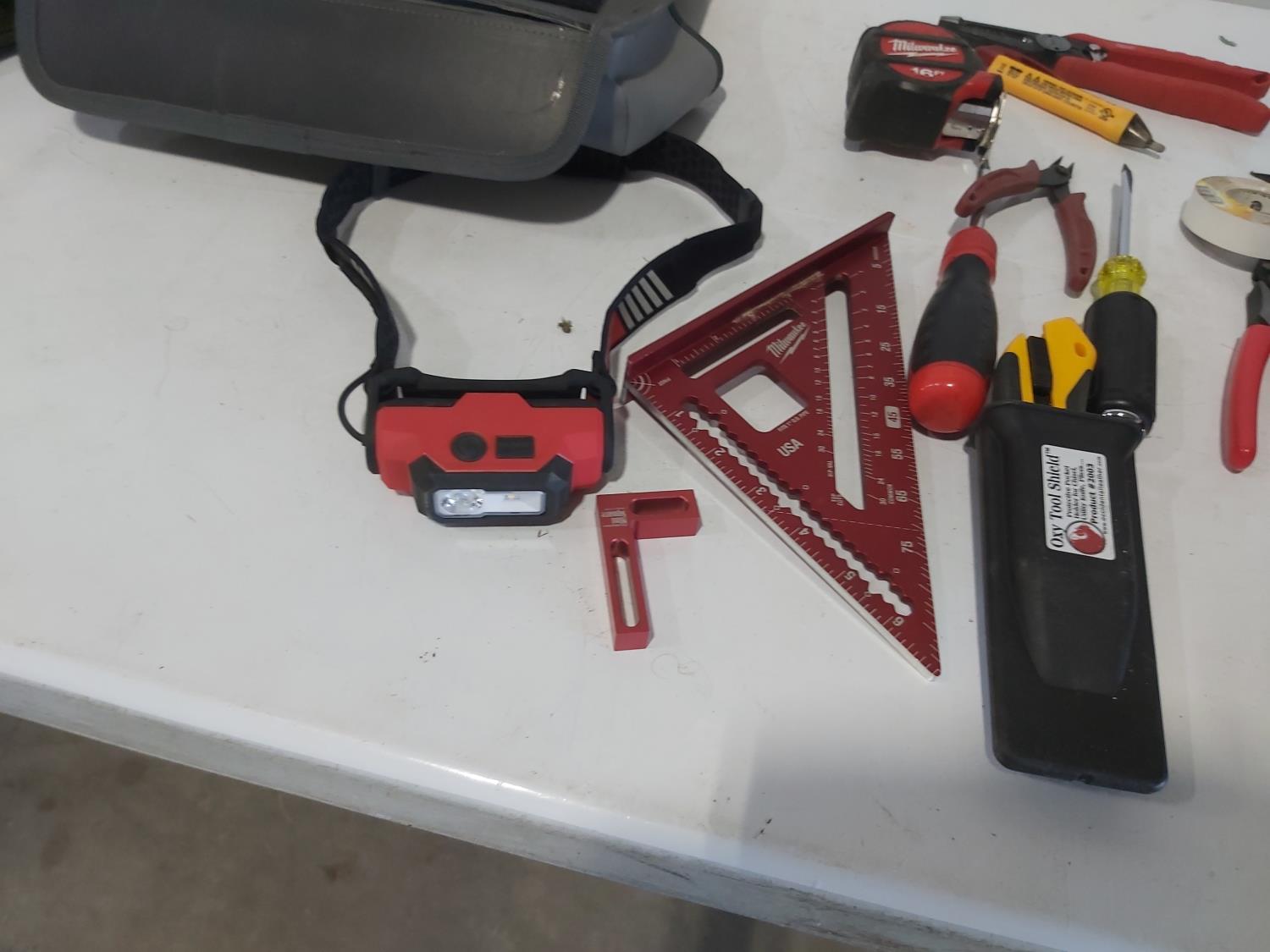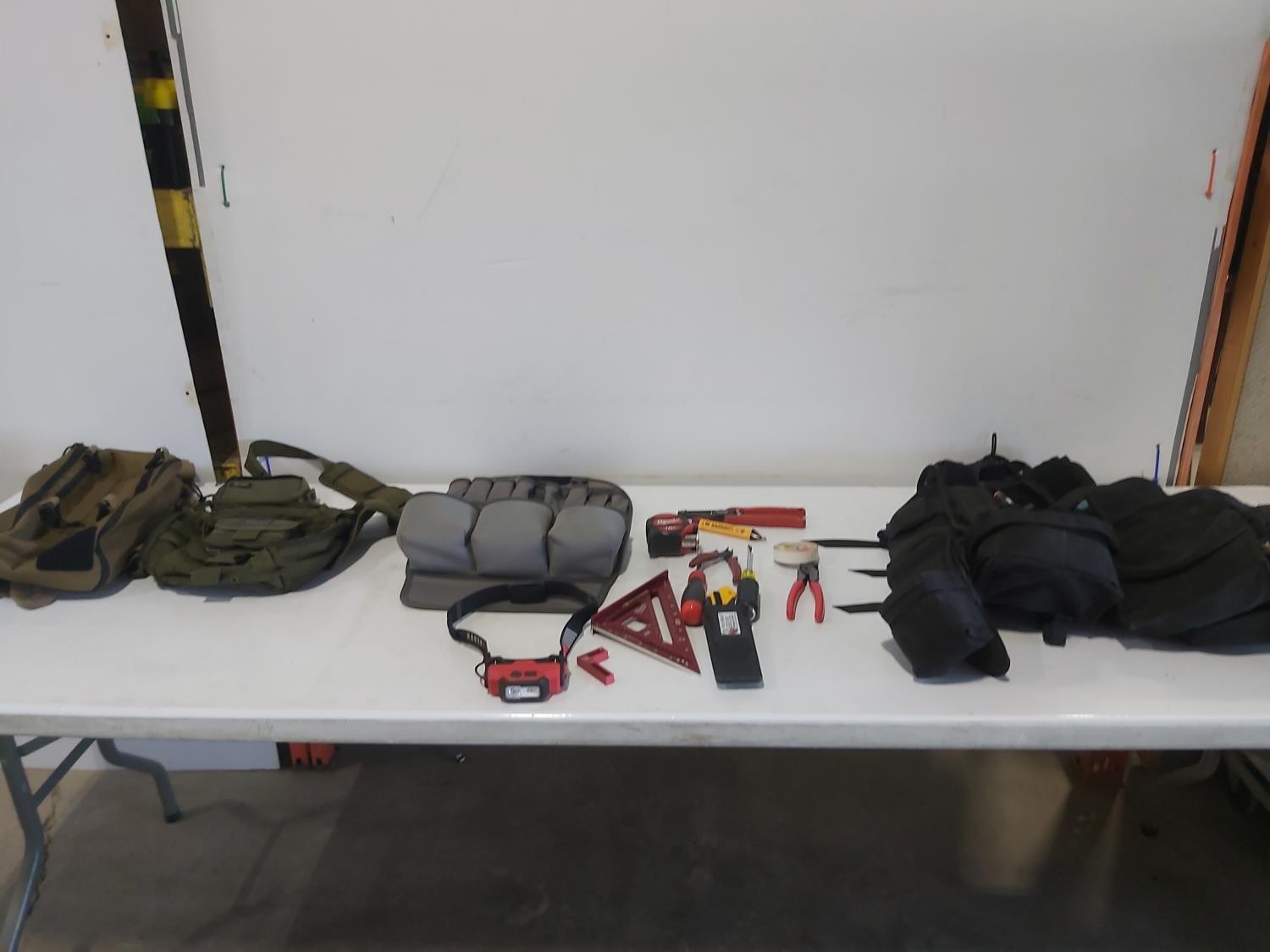 1100 (2) Tool Bags, Large Tool Vest, Tool Storage Case and Misc Hand Tools