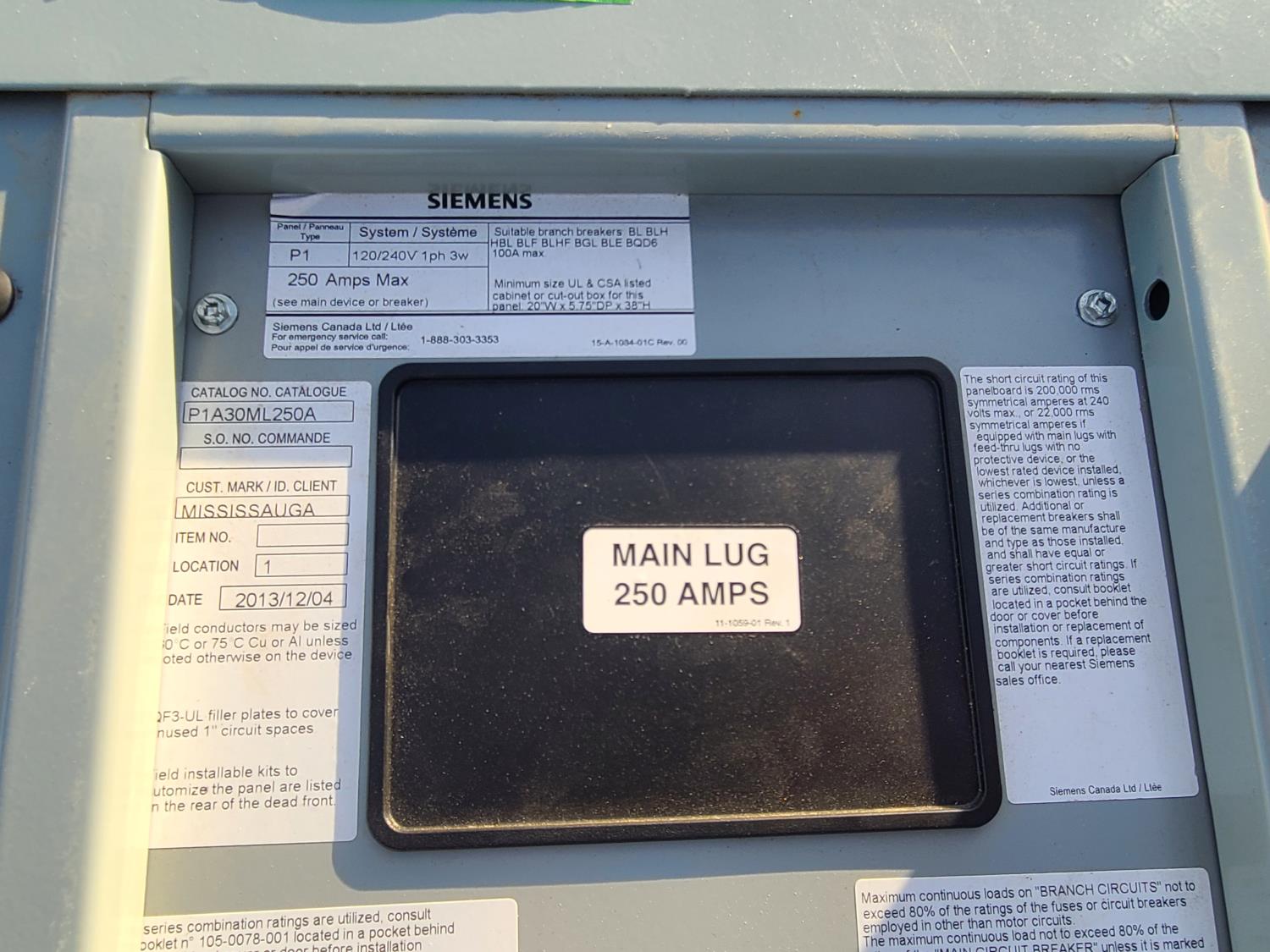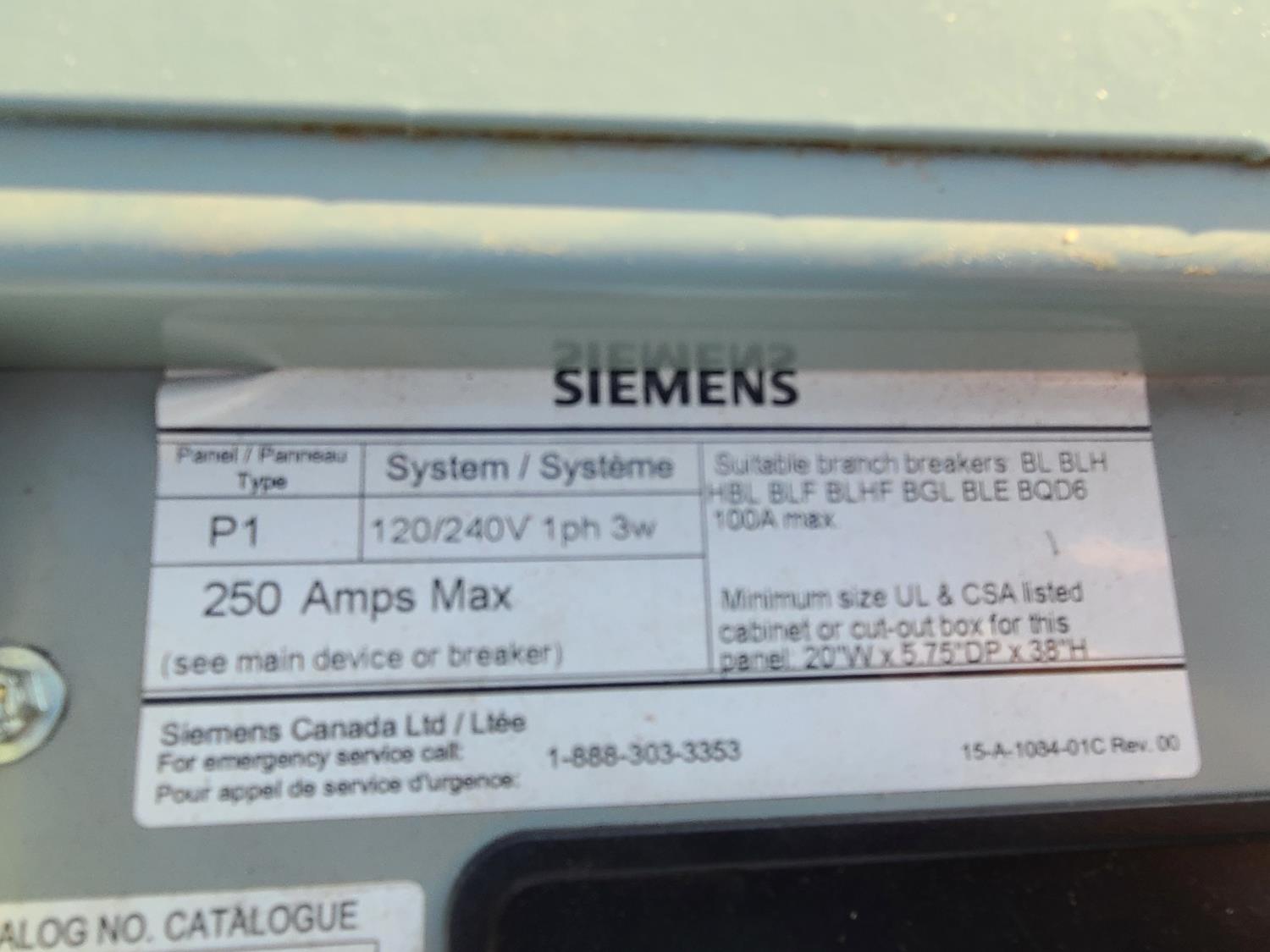 1861 Siemens P1A30ML250A 250 Amp Breaker Panel