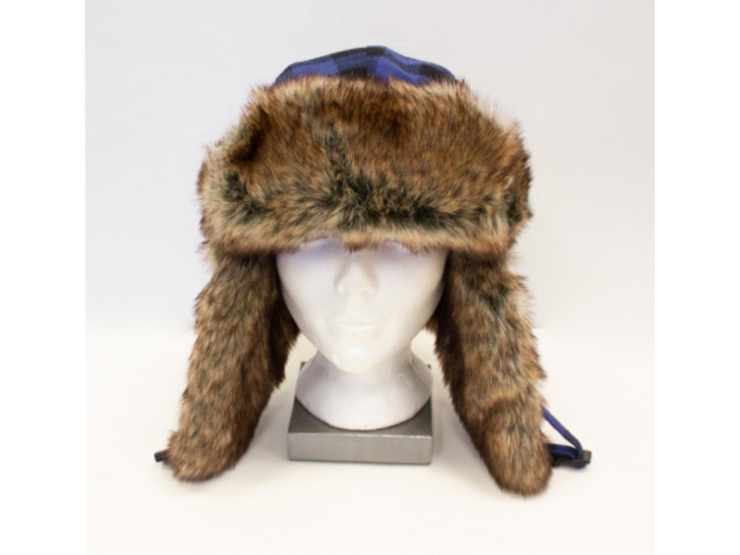 1060 (4) Fur Blue Plaid Trapper Hats (Unused)