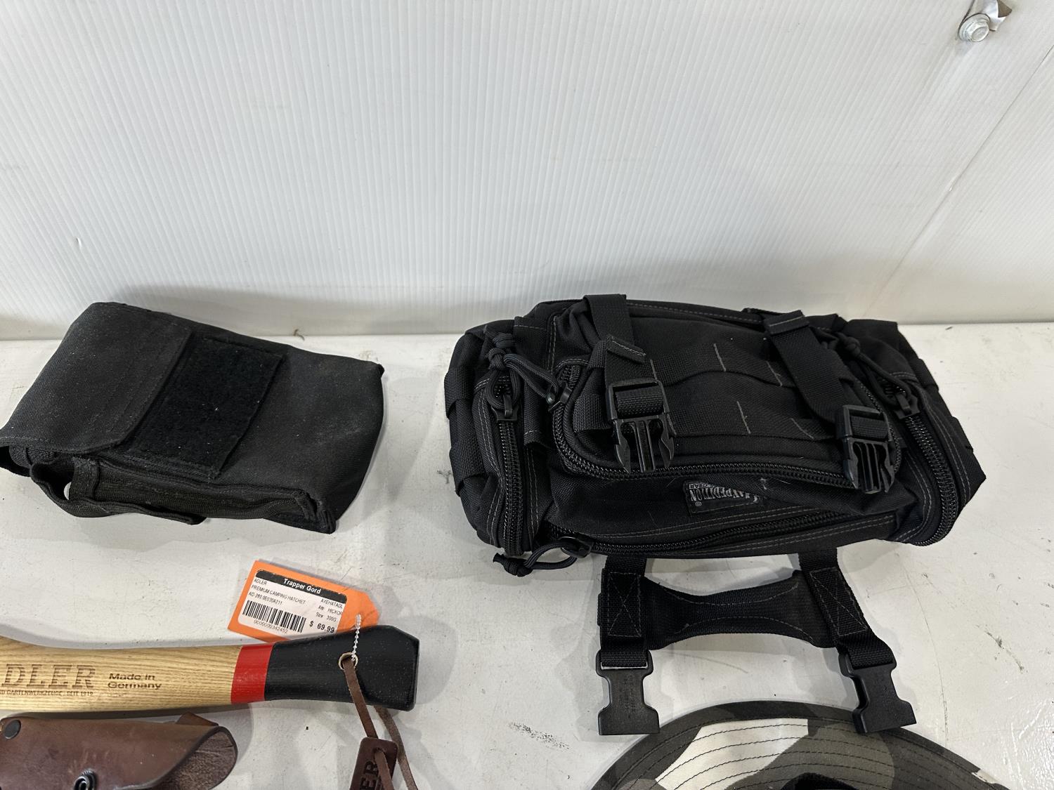 1180 Gibson Hatchet, Adler Hatchet and Assorted Pouches
