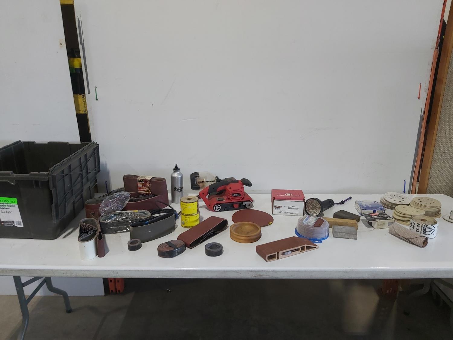 1070 Qty of Abrasive Belts and Discs, Skil Belt Sander and Flashlight