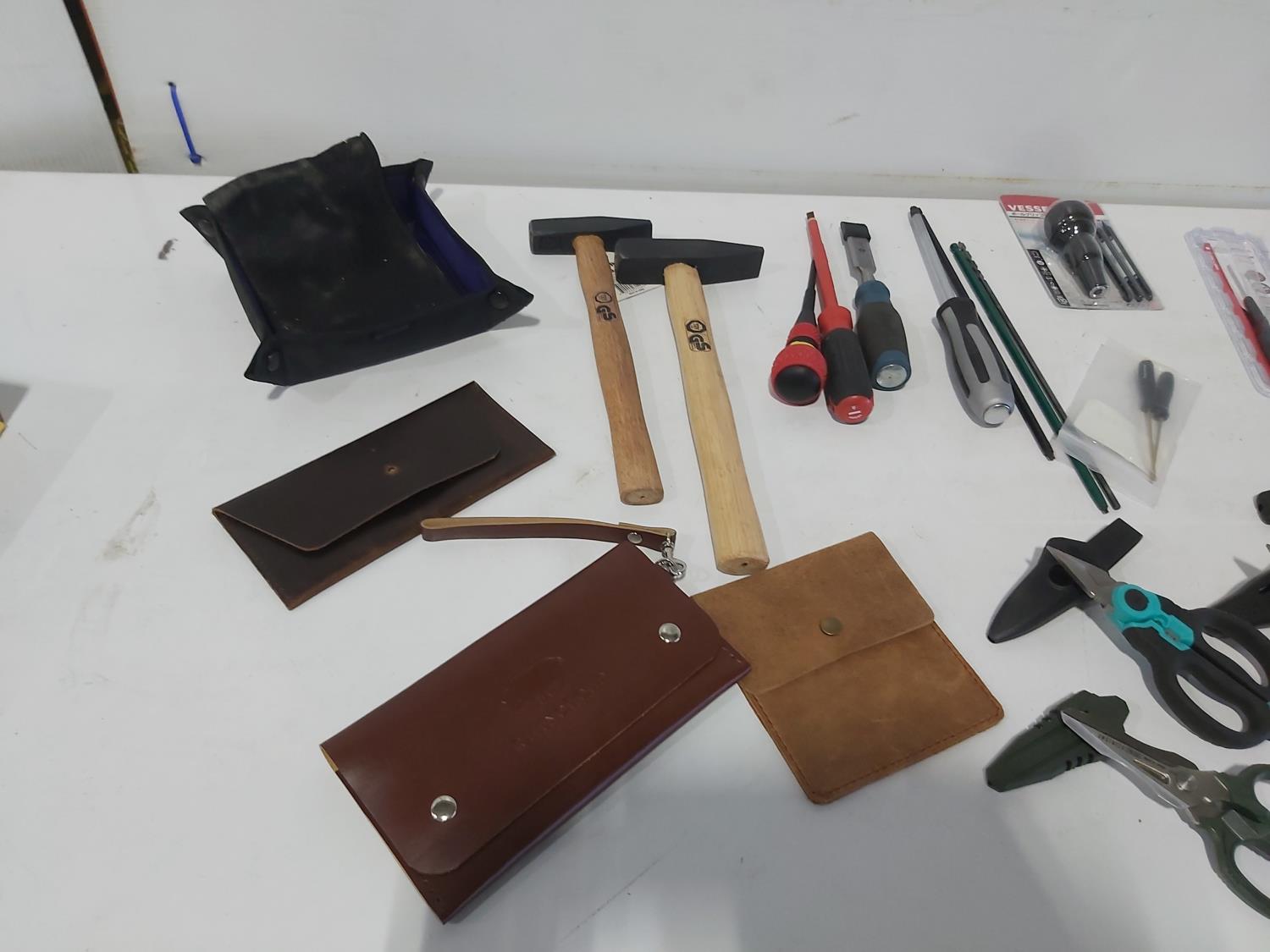 (2) hammers, (3) scissors, (2) chisels, (4) screwdrivers