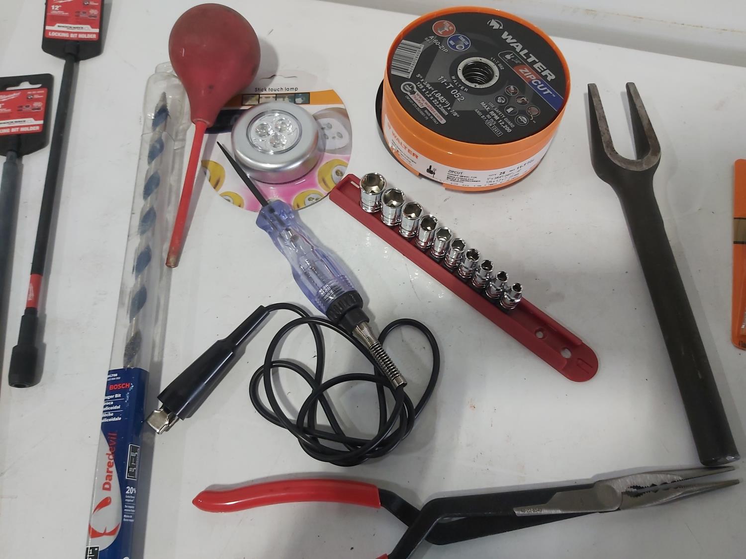 (25) 5 inch Walter zip cut discs, glue, locking bit holders, drill bits