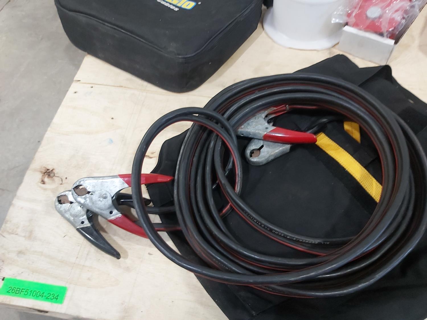 brake line locking system, (3) sets of booster cables, Rugged Tools cable bag