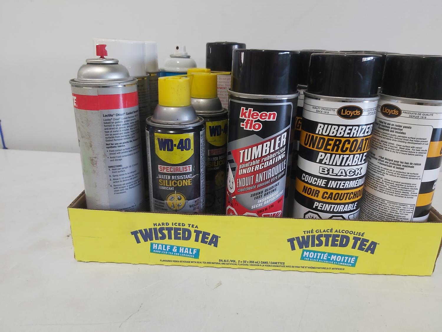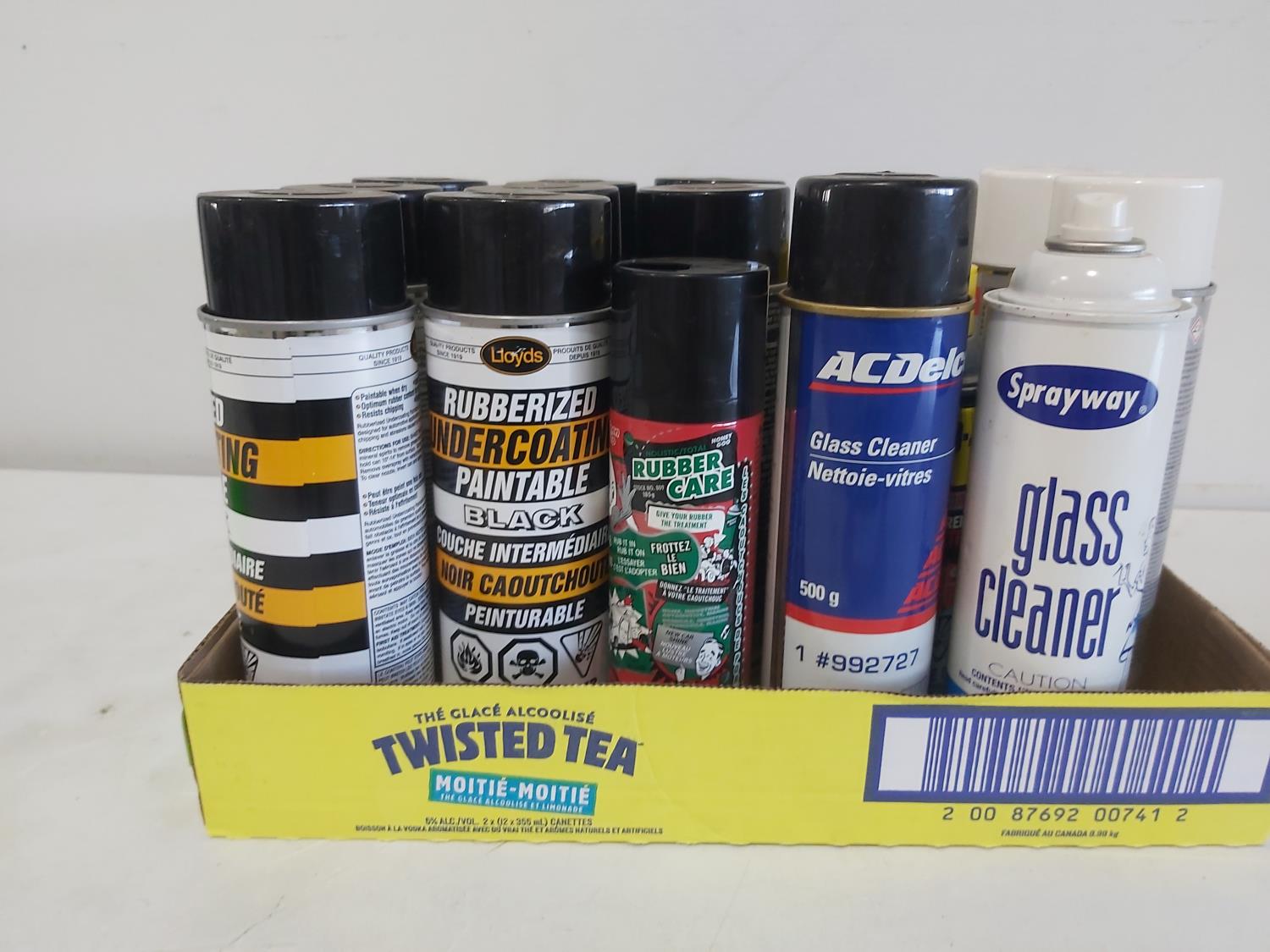 paint, lubricant, glass cleaner