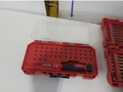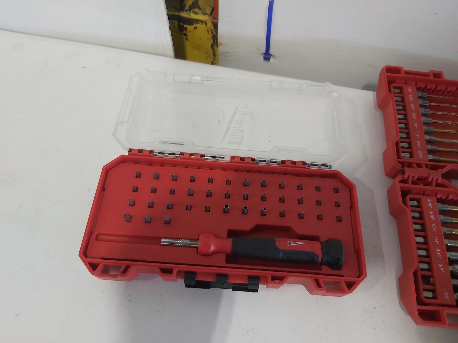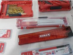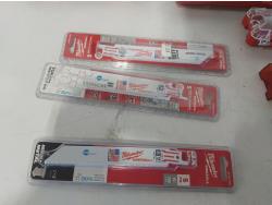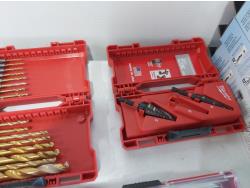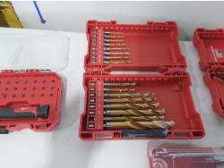 toggler anchors, (2) 16 ft measuring tapes, (6) small tool bags, 120 piece hydraulic grease fitting kit, Milwaukee sawzall blades, Milwaukee drill bit kit, Milwaukee shockwave kit, Milwaukee driver kit