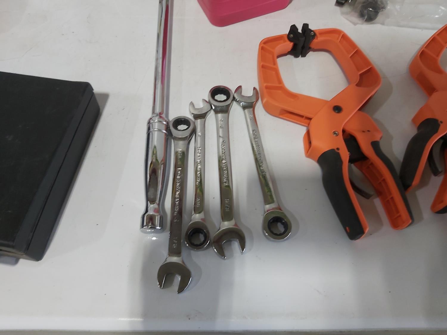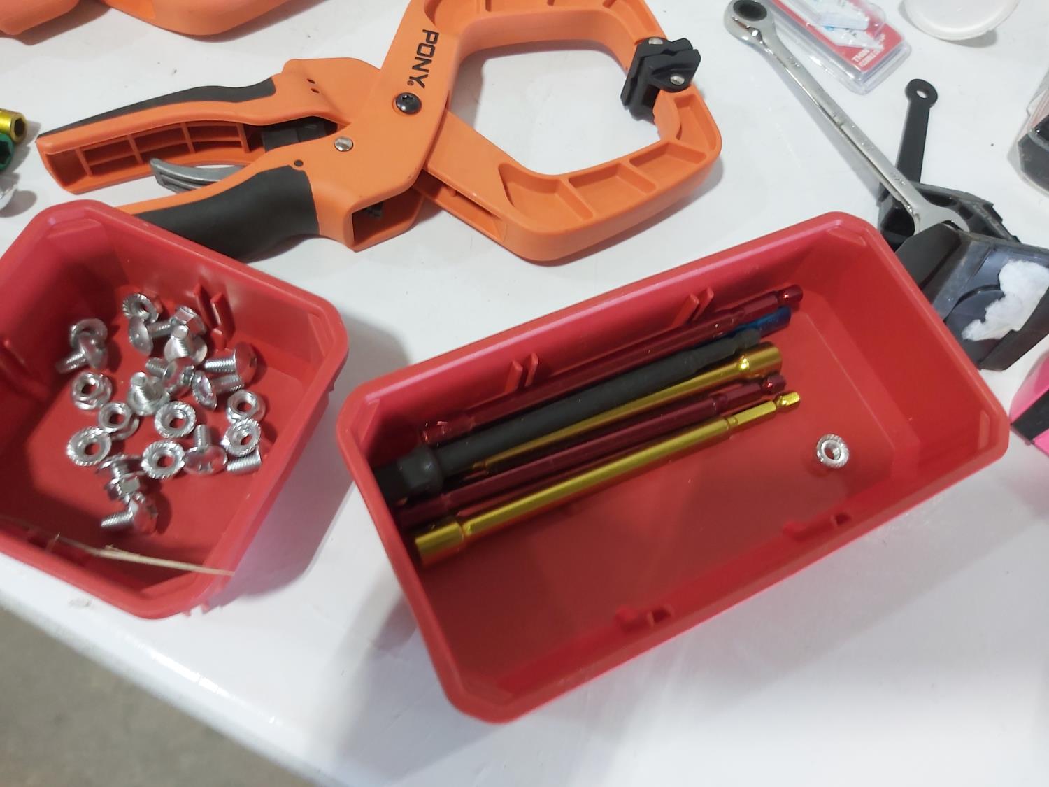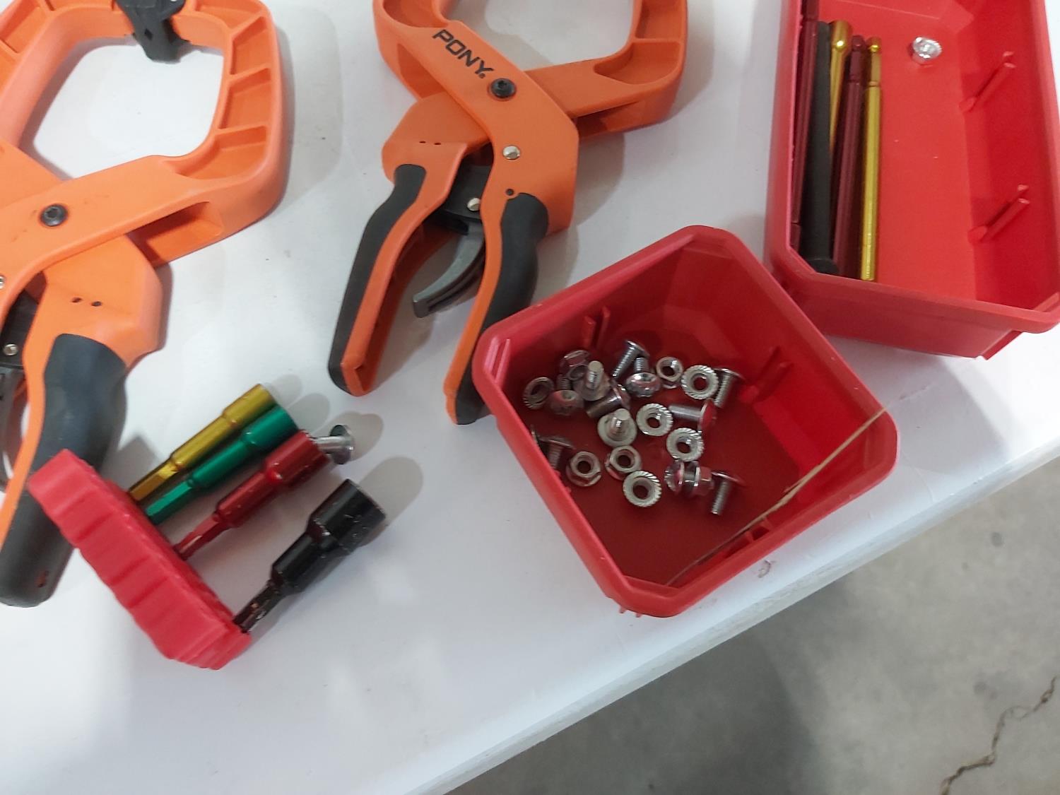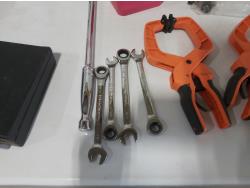 (3) quick clamps, Gyro tuner, Besam circuit tester, drill bits