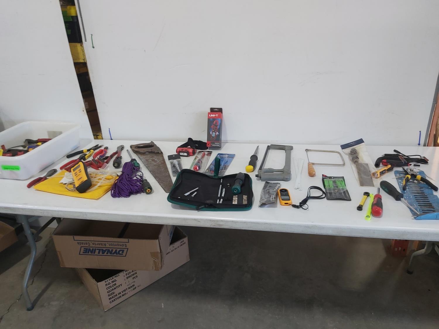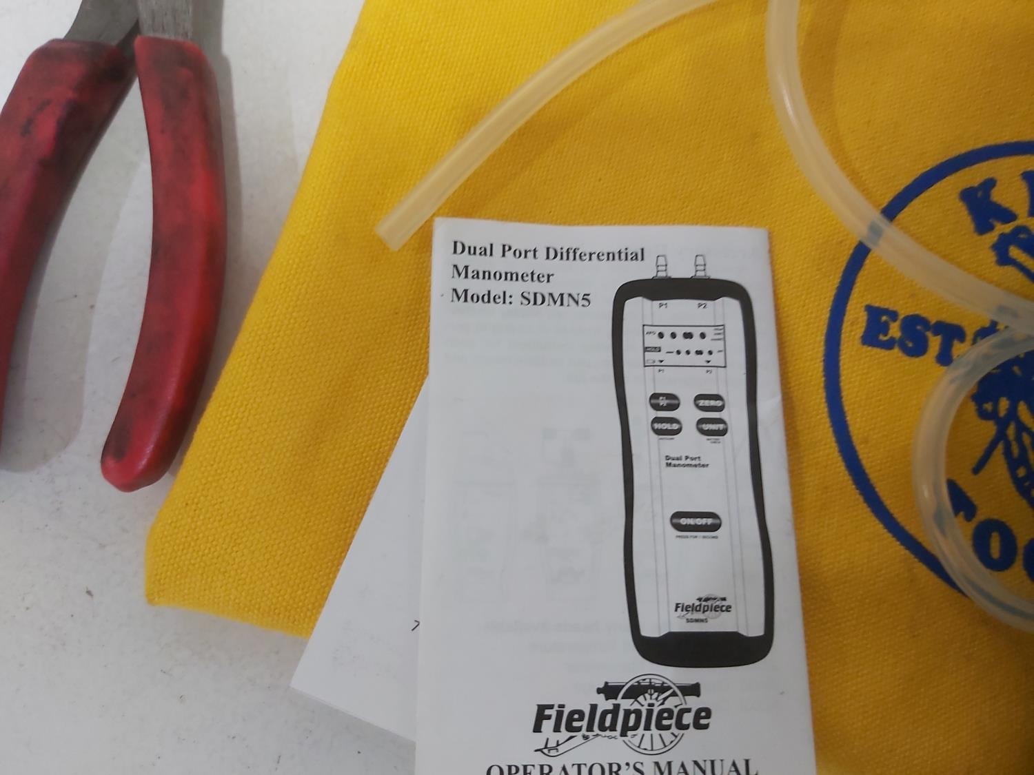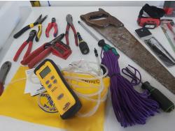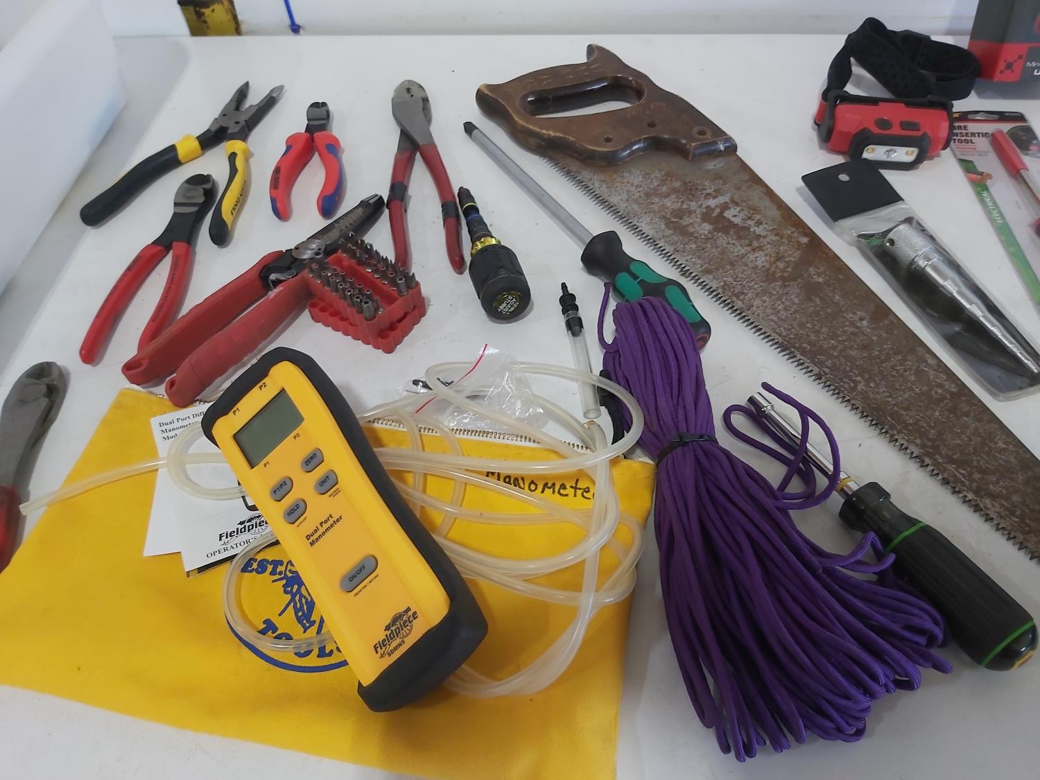 (5) saws, dual port manometer, anemometer, mini clamp meter, screwdrivers, pliers