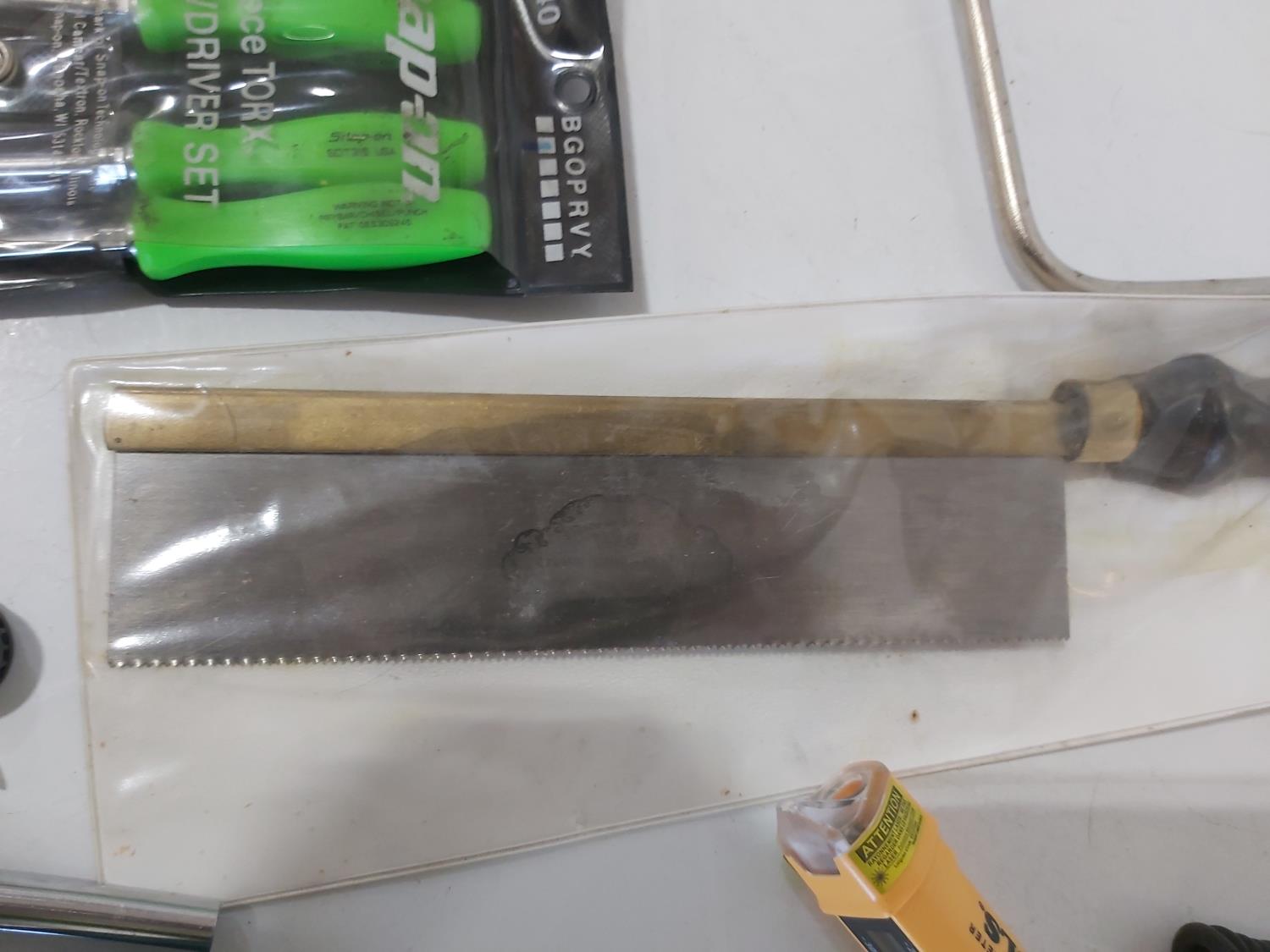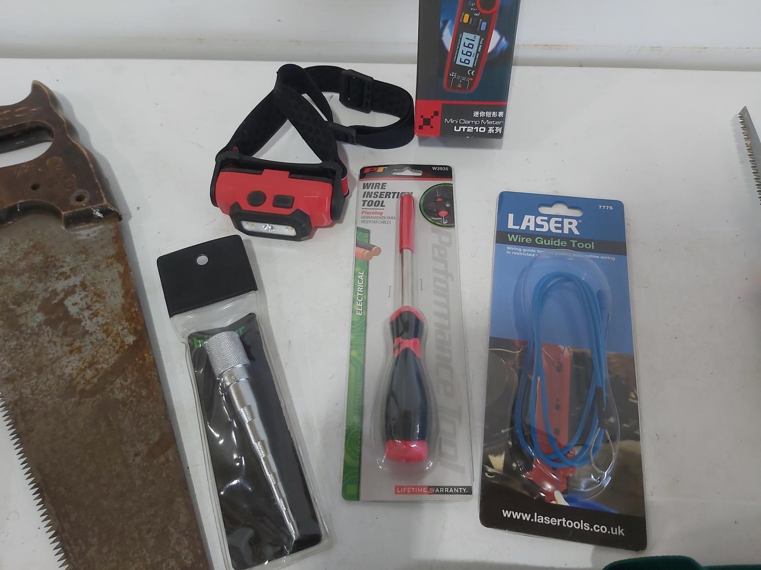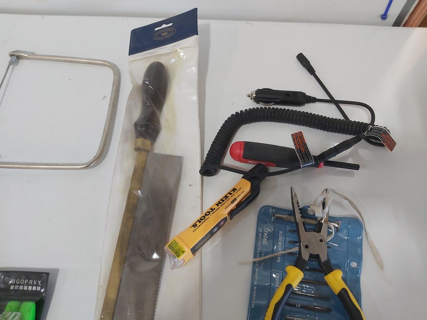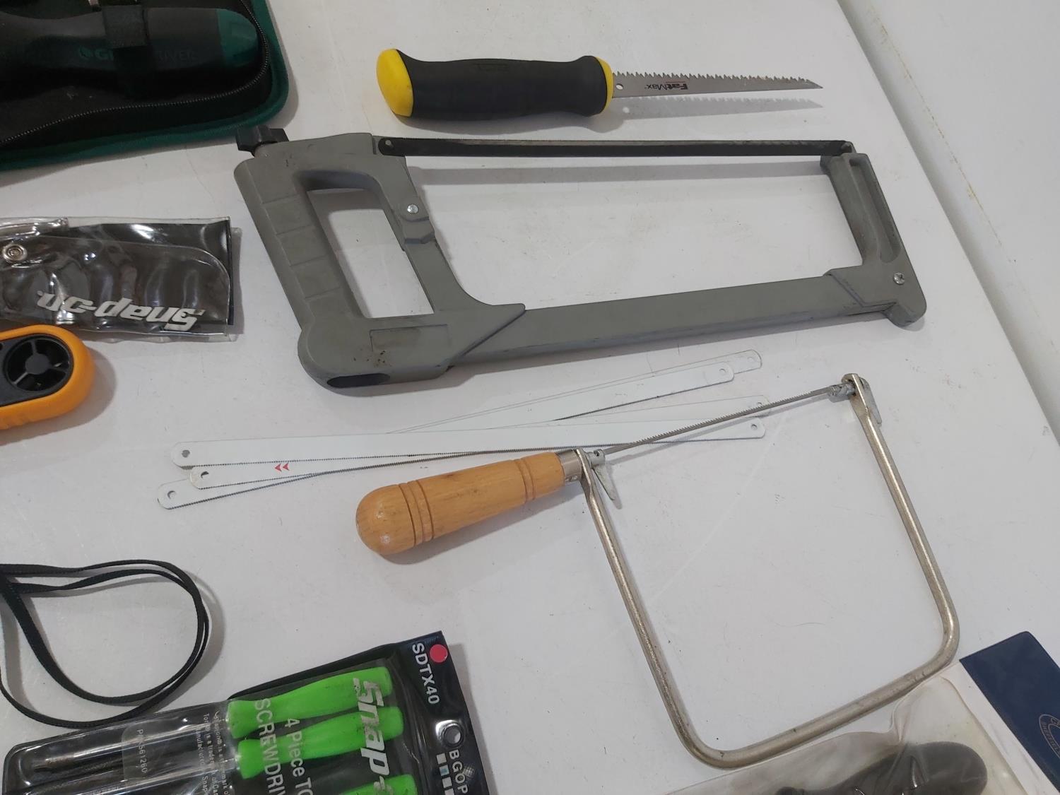 (5) saws, dual port manometer, anemometer, mini clamp meter, screwdrivers, pliers