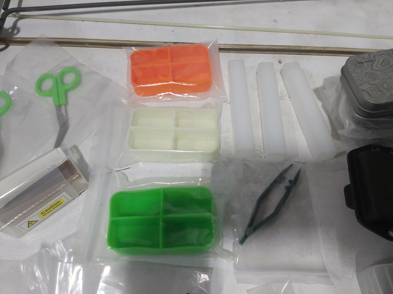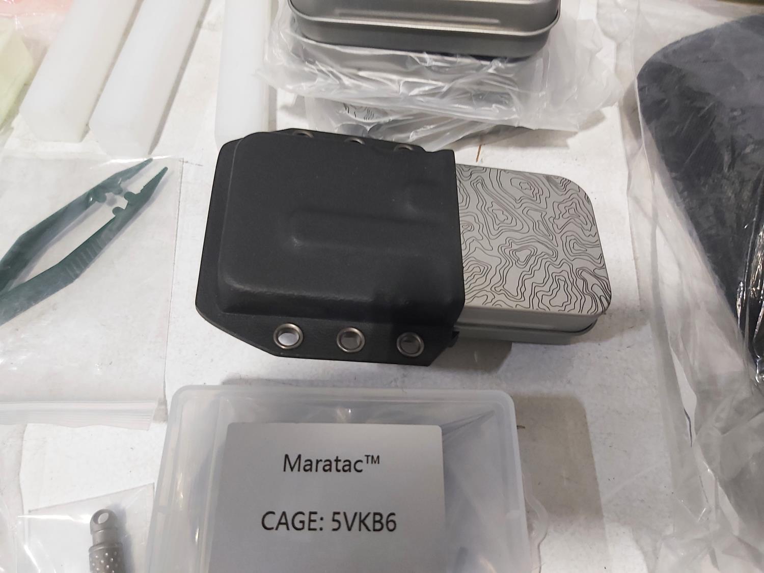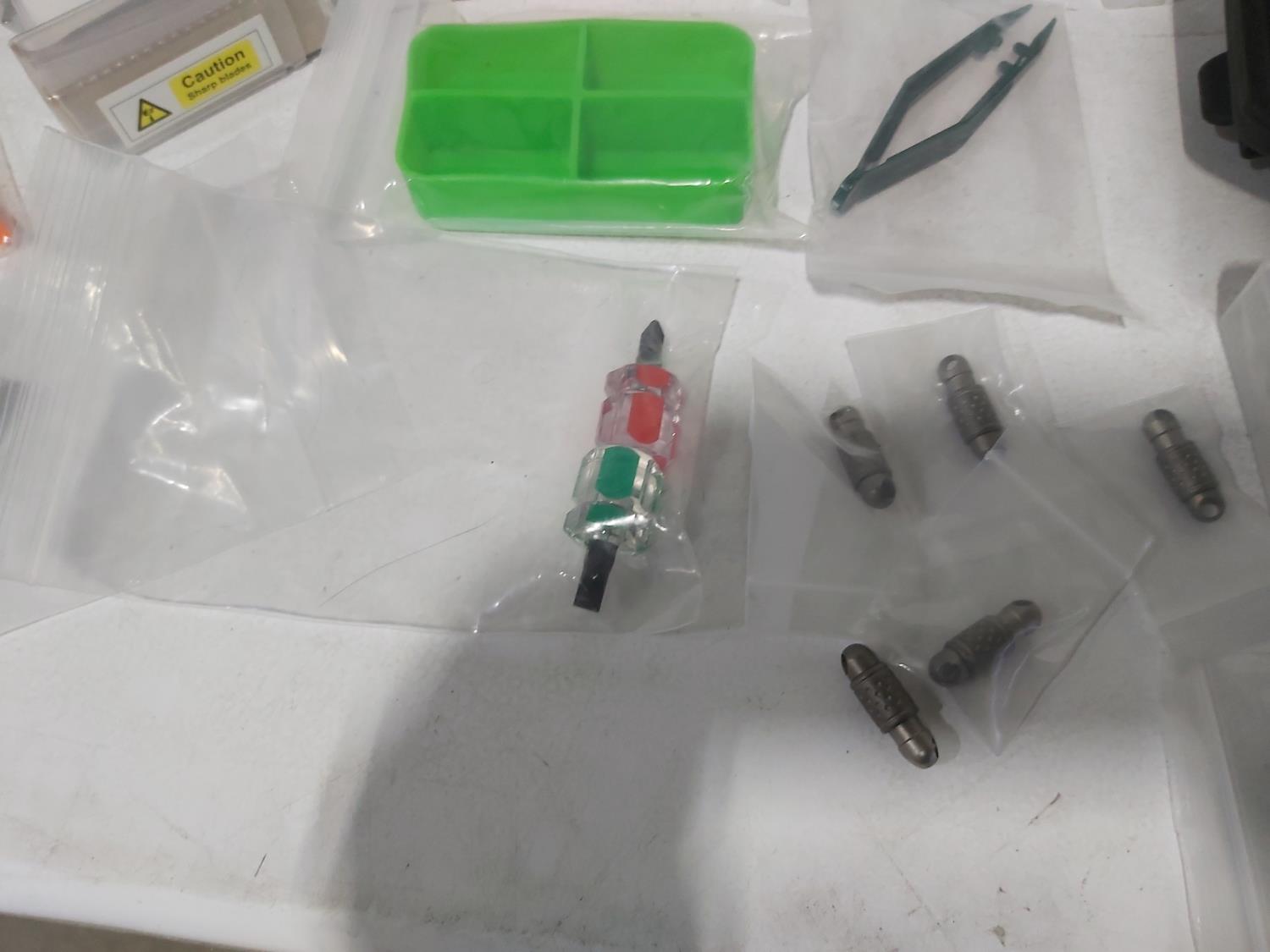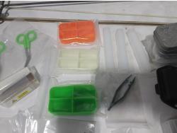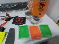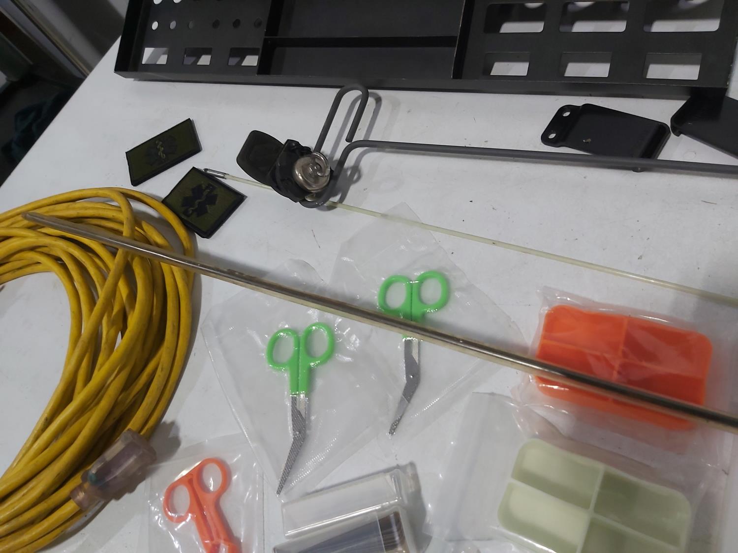 48 inch x 15 ft auto carpets, (2) air filters, (3) rubber parts trays, (6) small wedges, cable bits, 6 ft flag whip, 3500 PSI pressure gauge, pen knife, air bag jack, 2 ft metal tool storage shelf, various Precision Tools