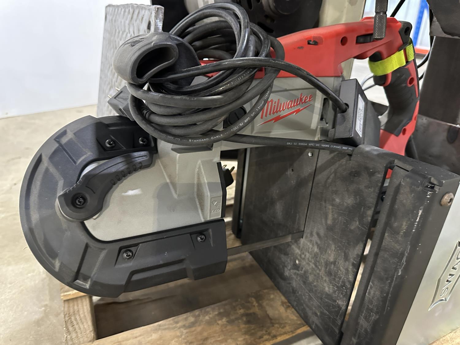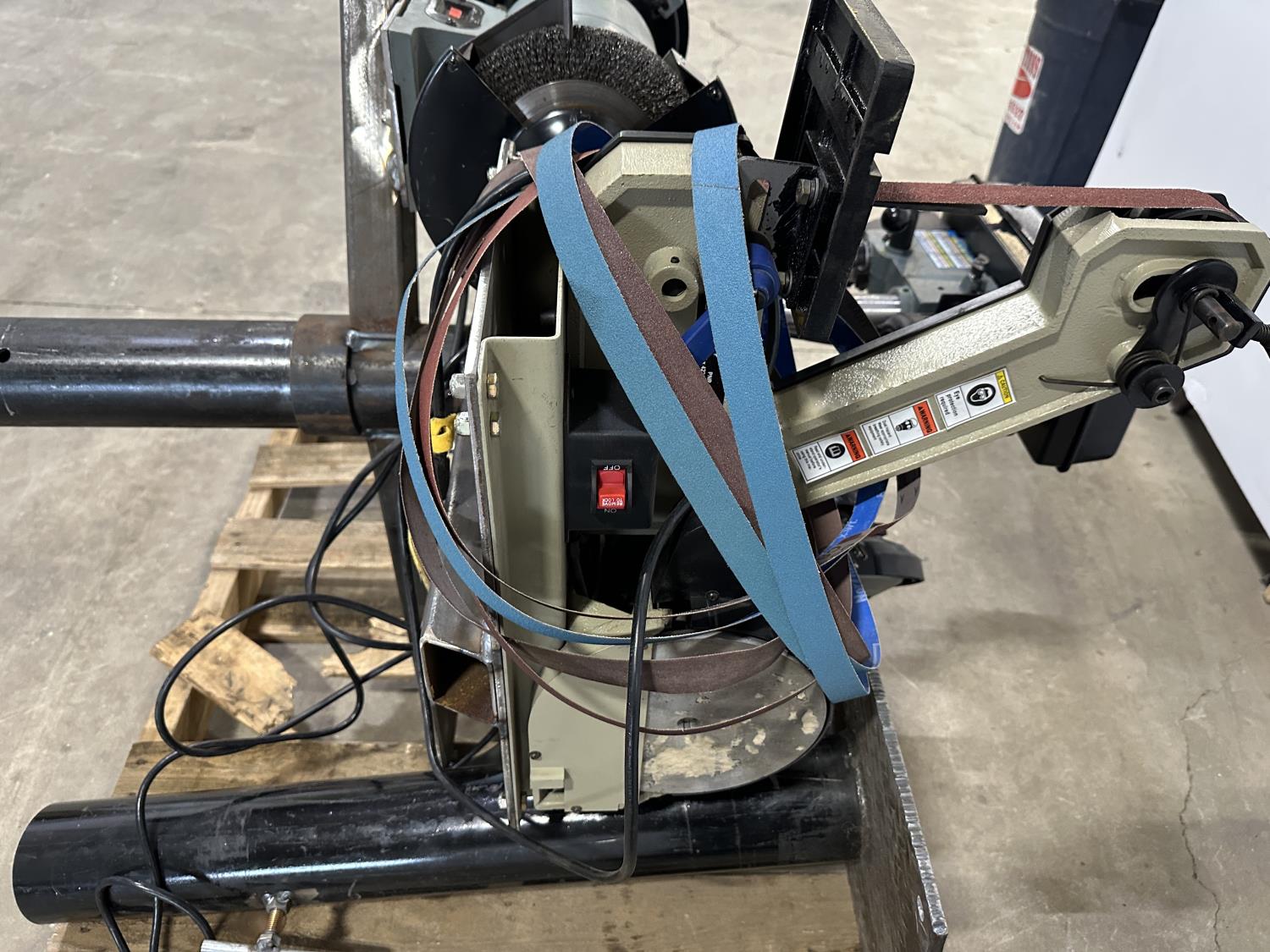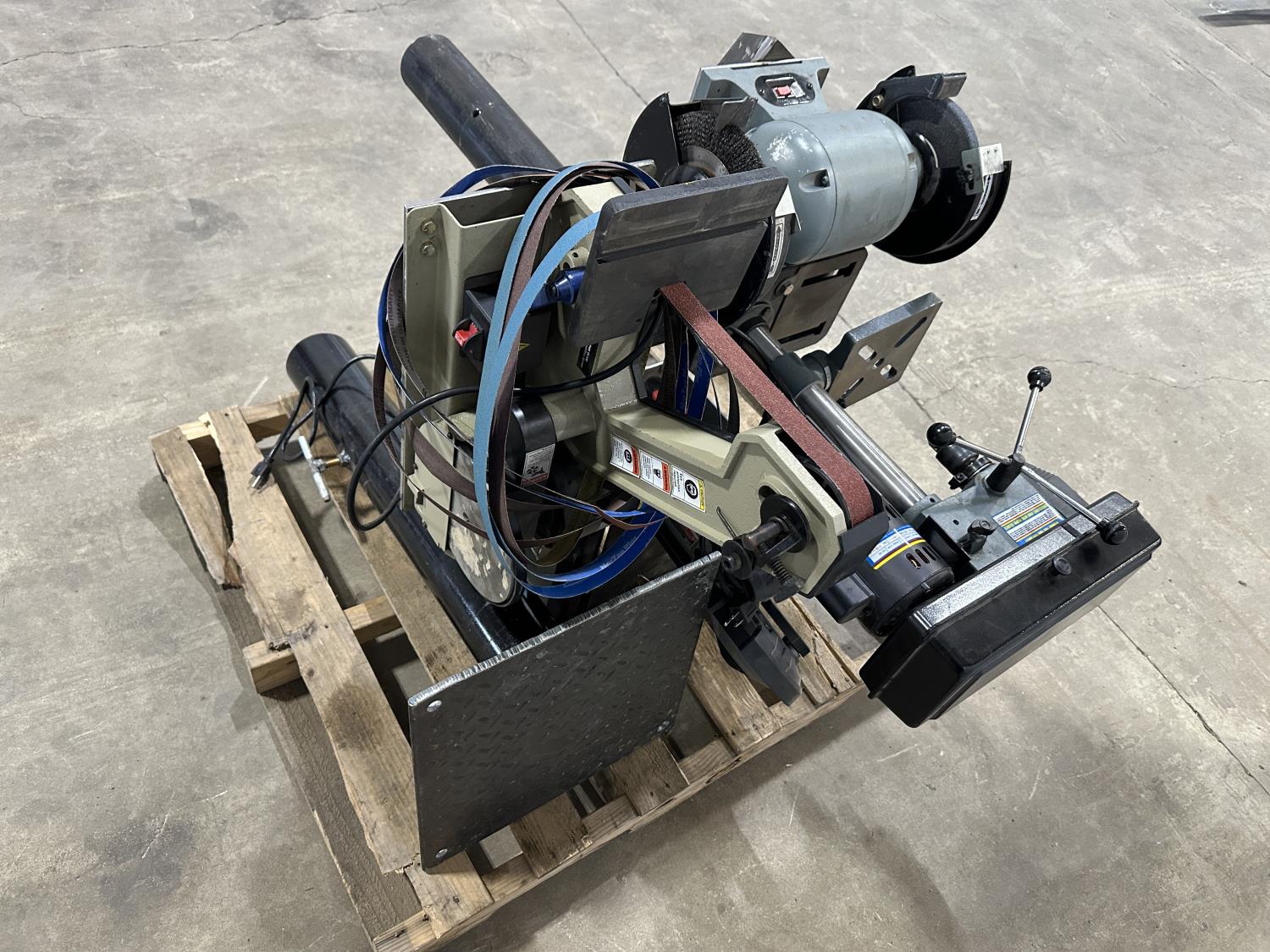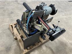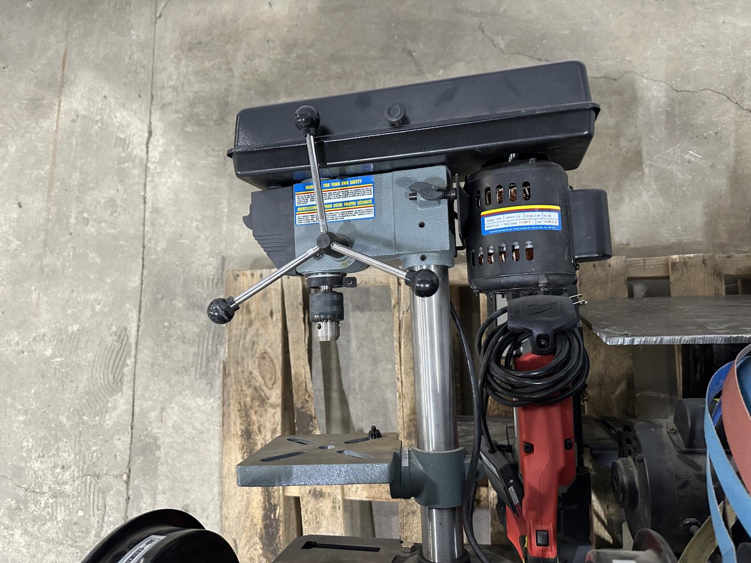 8 inch bench grinder, King Canada 8 inch drill press, Milwaukee deep cut band saw, Pioneer 1 inch x 42 inch belt/disc sander