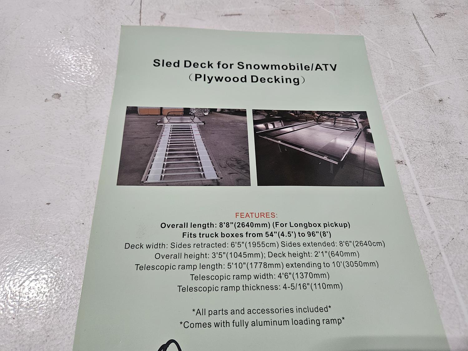 1688 Snowmobile/ATV Deck (Unused)