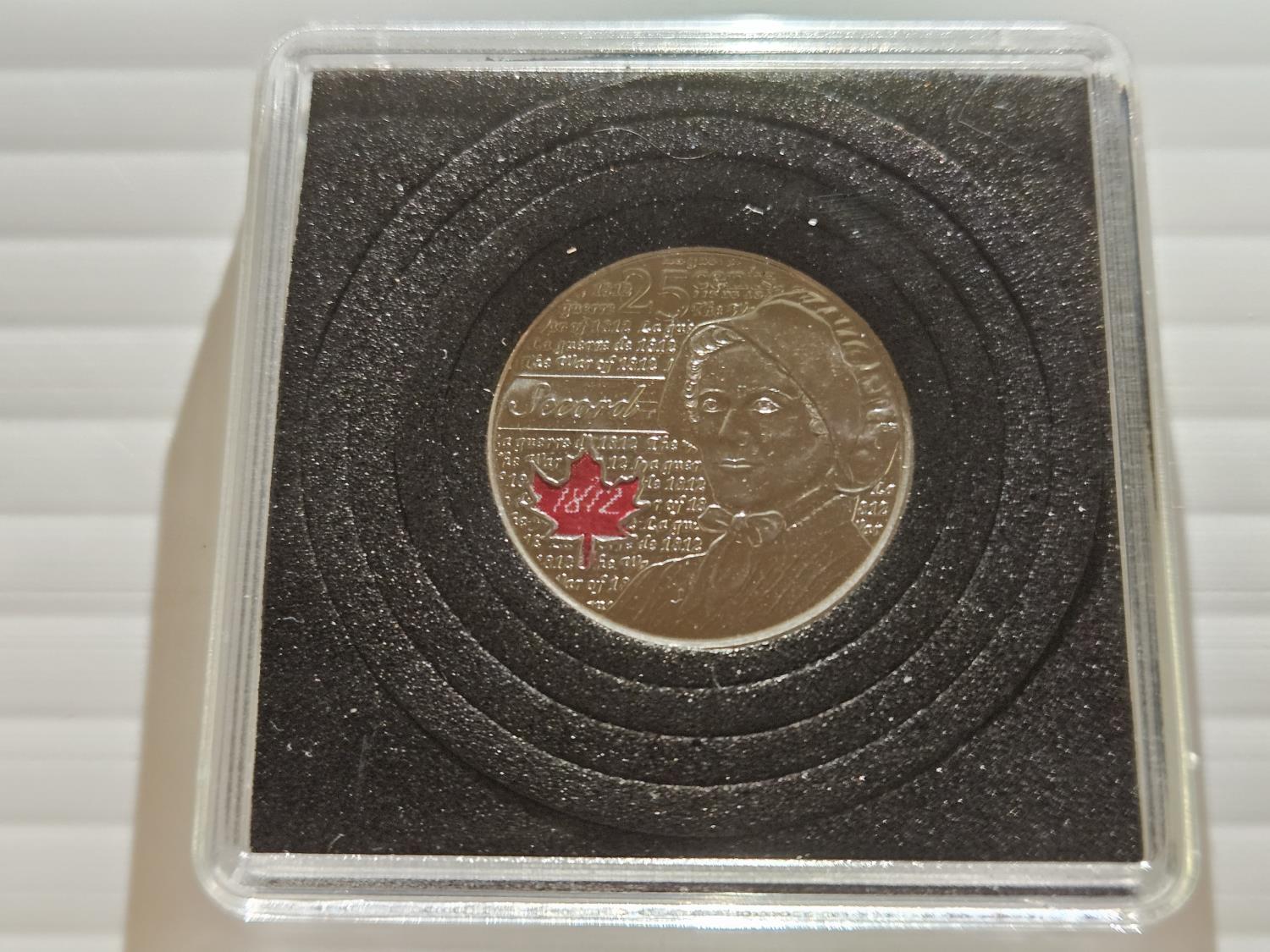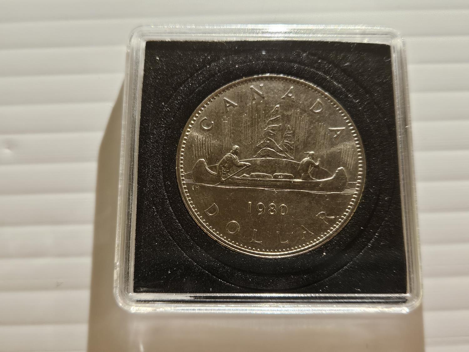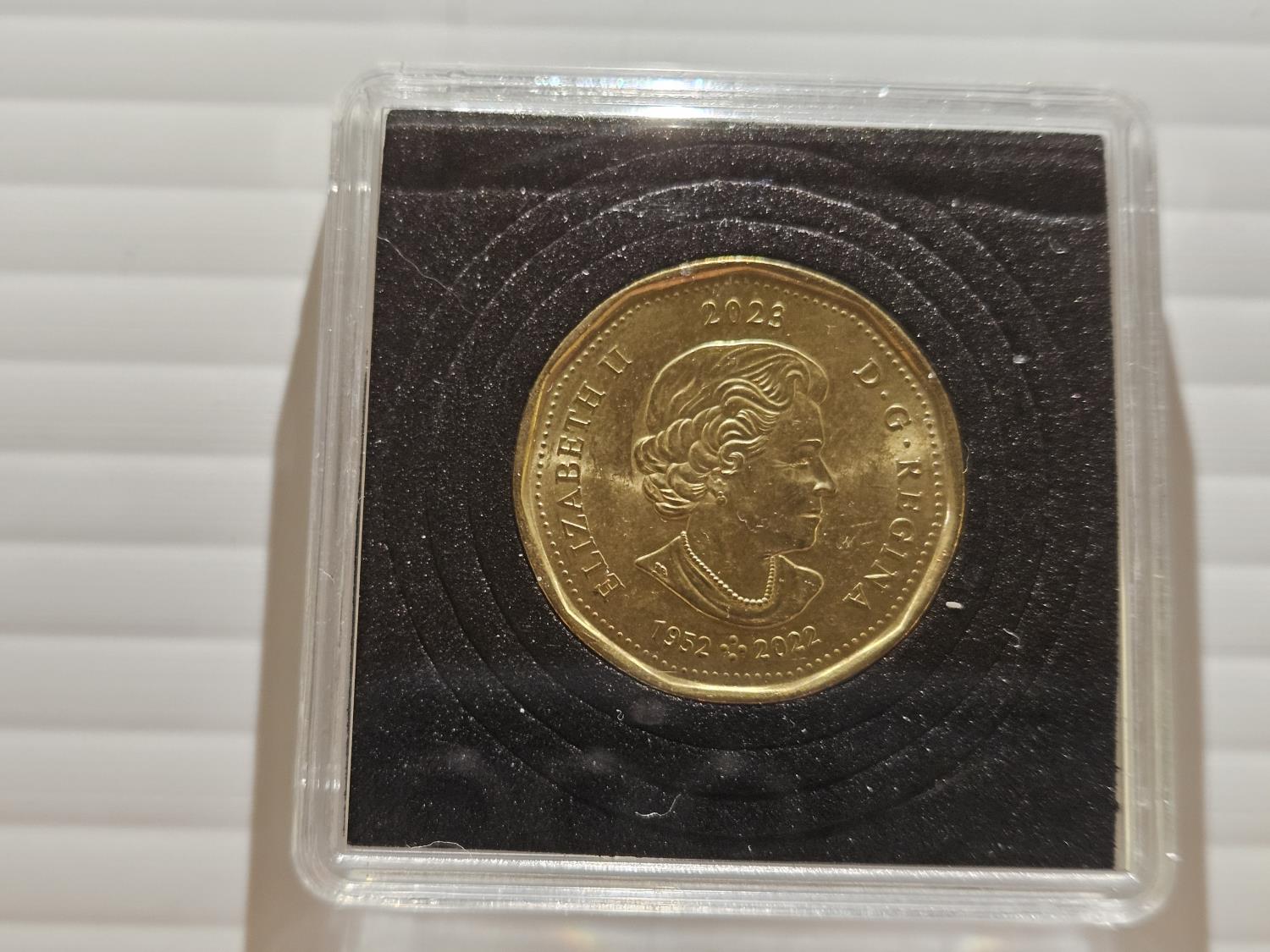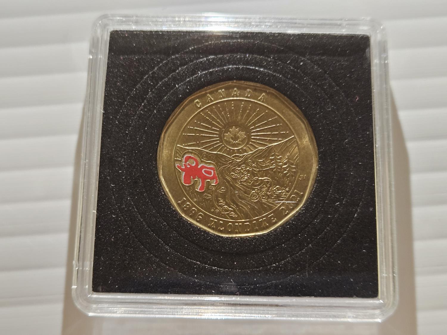 includes (1) large Chinese coin, (6) $1 Canadian coins, (1) $2 Canadian coin, (3) Canadian $0.25 coins, (1) $0.05 Canadian coin