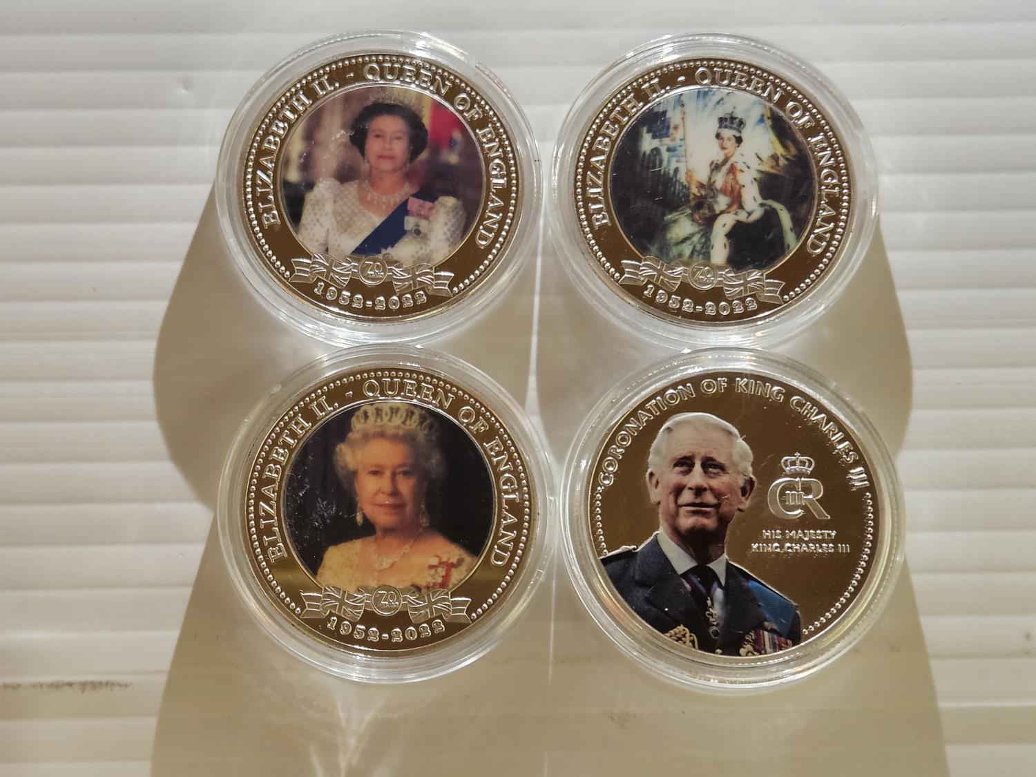 includes (3) with queen Elizabeth II, (1) king Charles III
