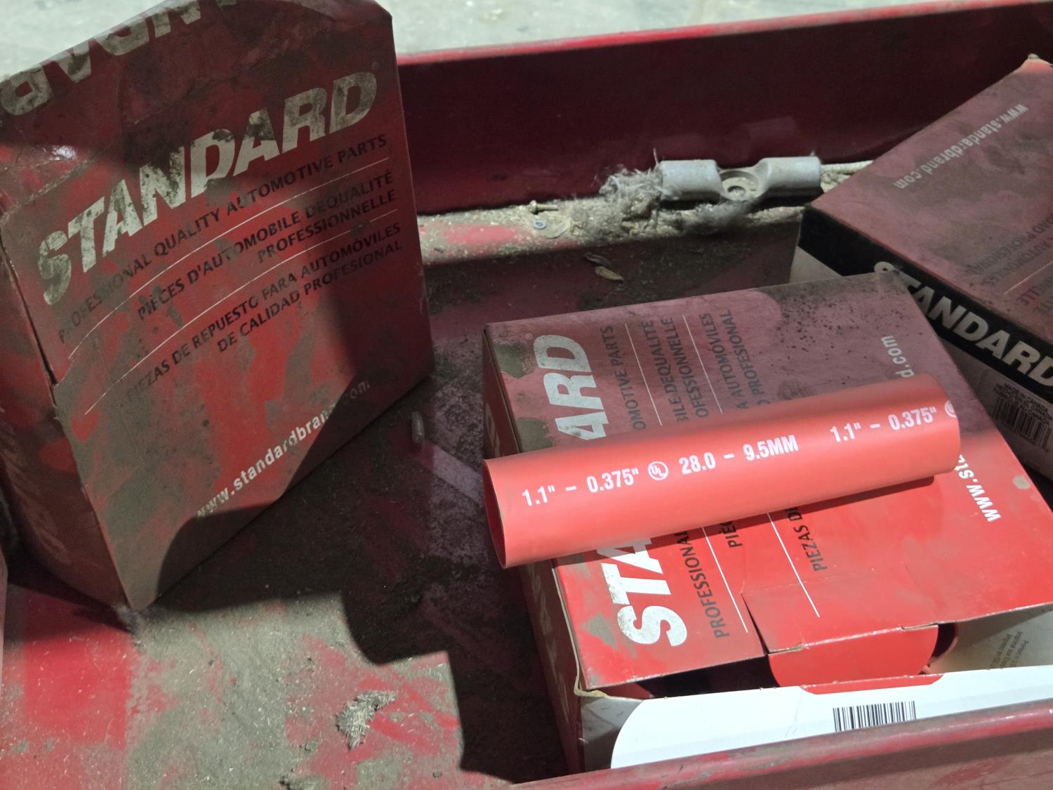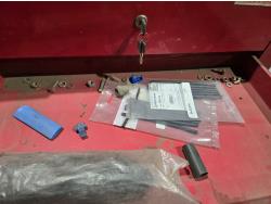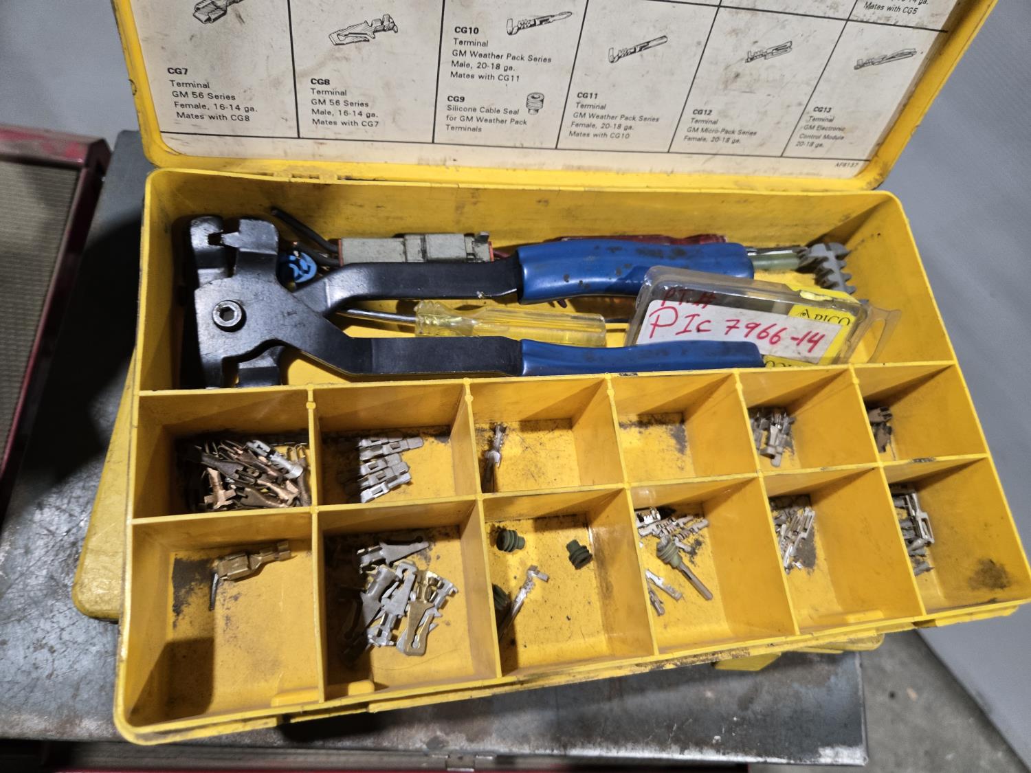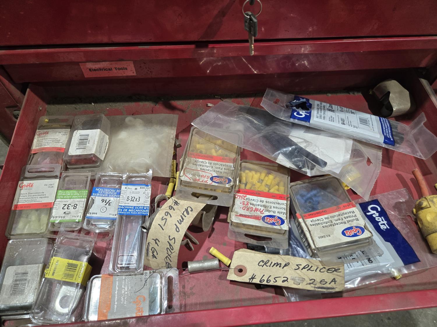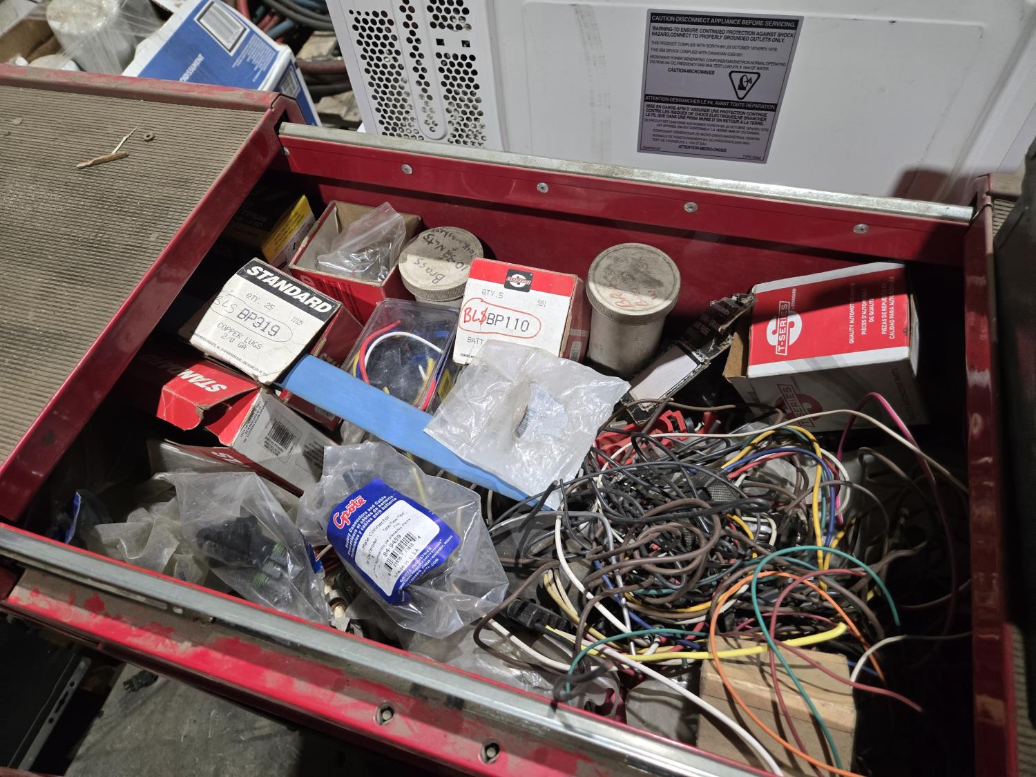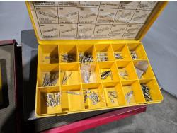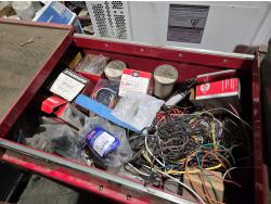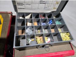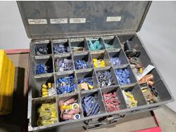 with contents including wire, solder, shrink tube, (4) small parts trays with assorted terminals