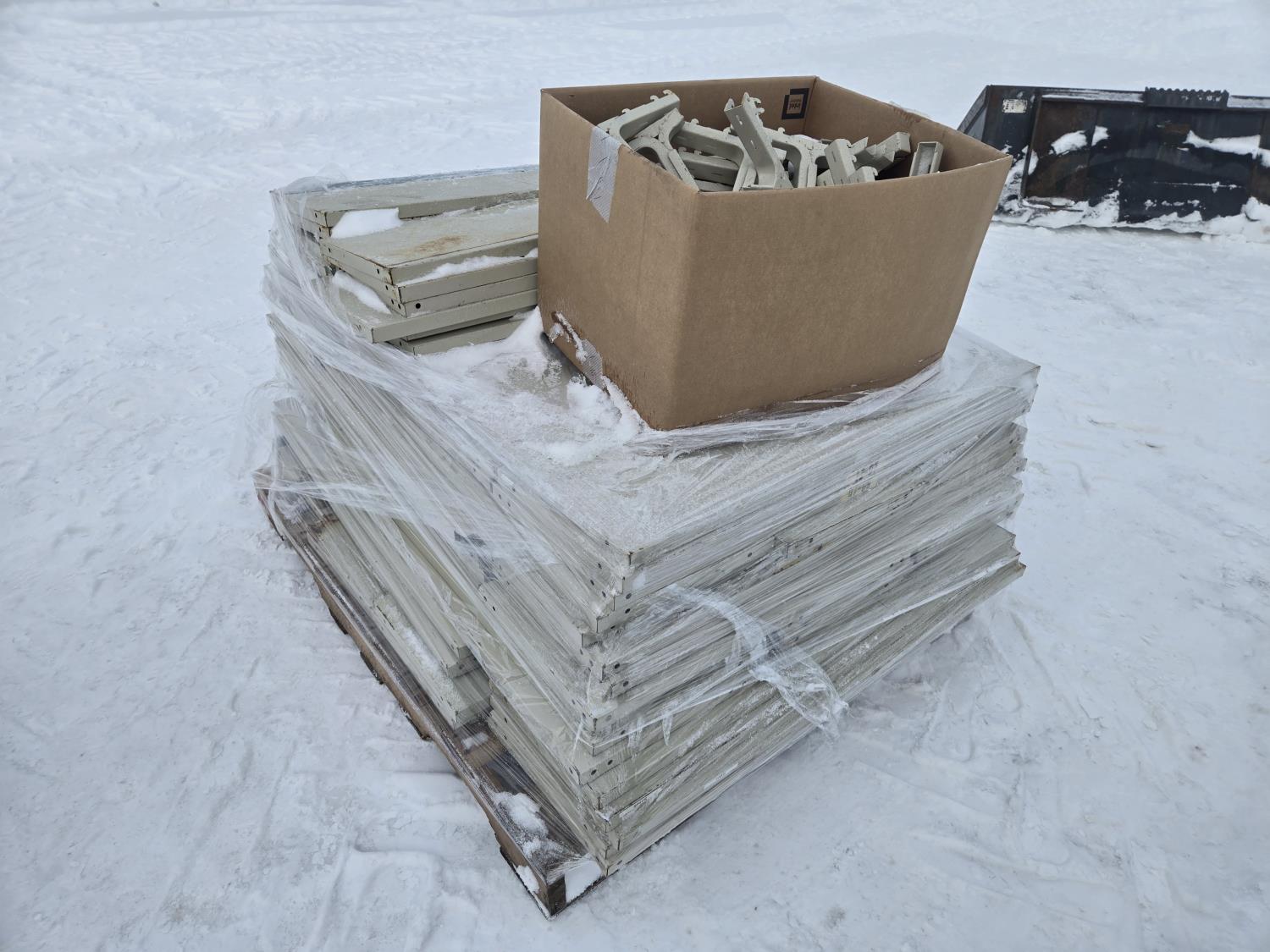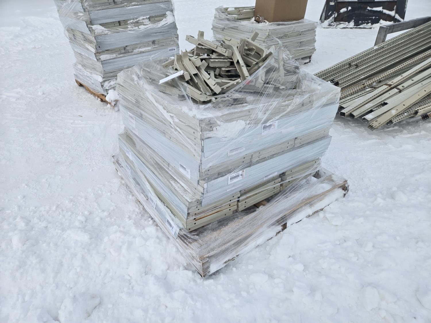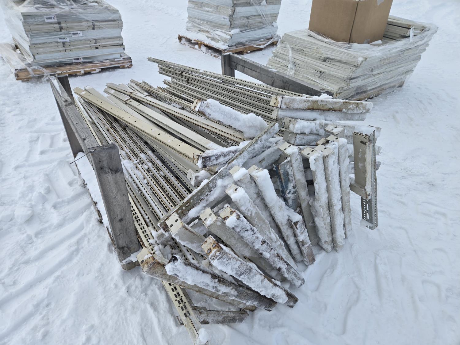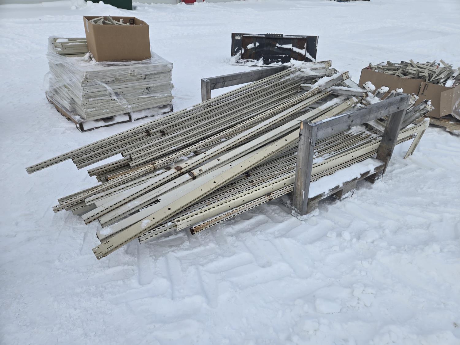 (32±) approximately 84 inch double sided posts, large qty of 12 inch X 30 inch metal shelves, large qty of shelving brackets