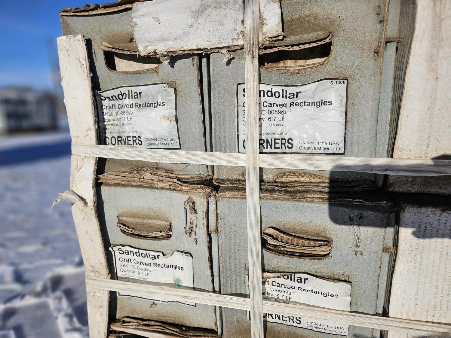 2192 Qty of (16) Boxes Sandollar Craft Carved Rectangular Corners Masonry Veneer
