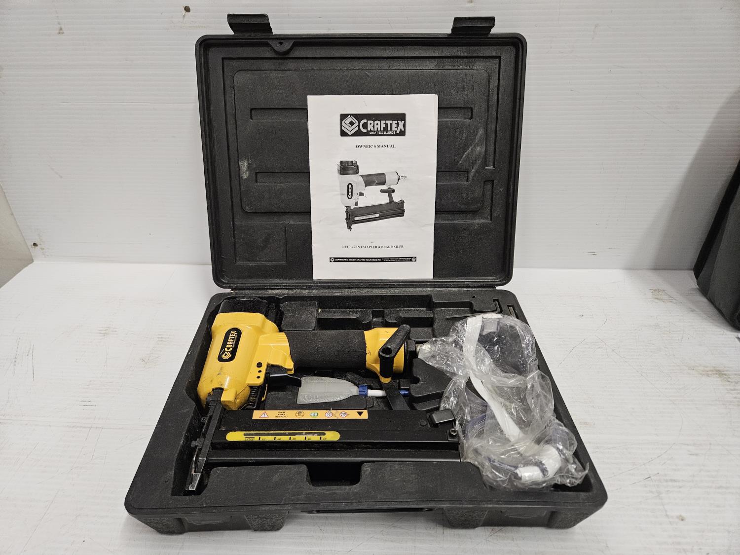 includes (1) Craftex 2in1 nailer/stapler, (1) Rigid R213BNA brad nailer