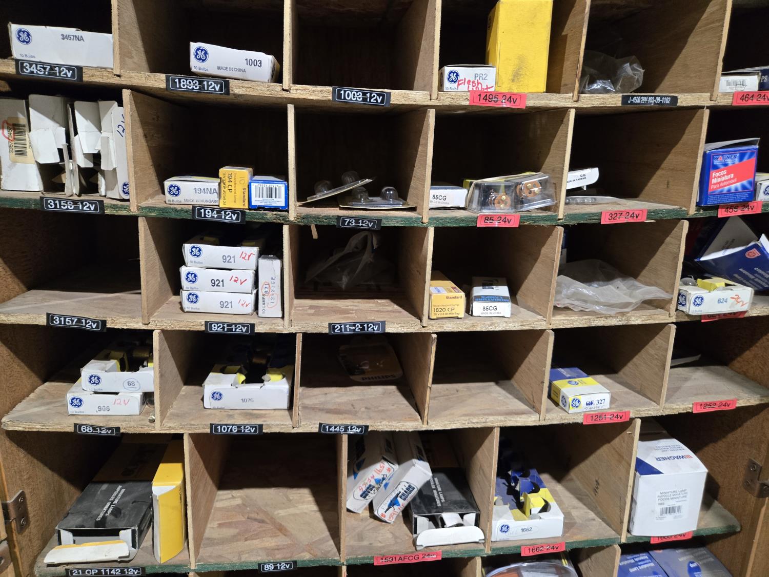 2293 Qty of Automotive Bulbs in Wooden Cabinet